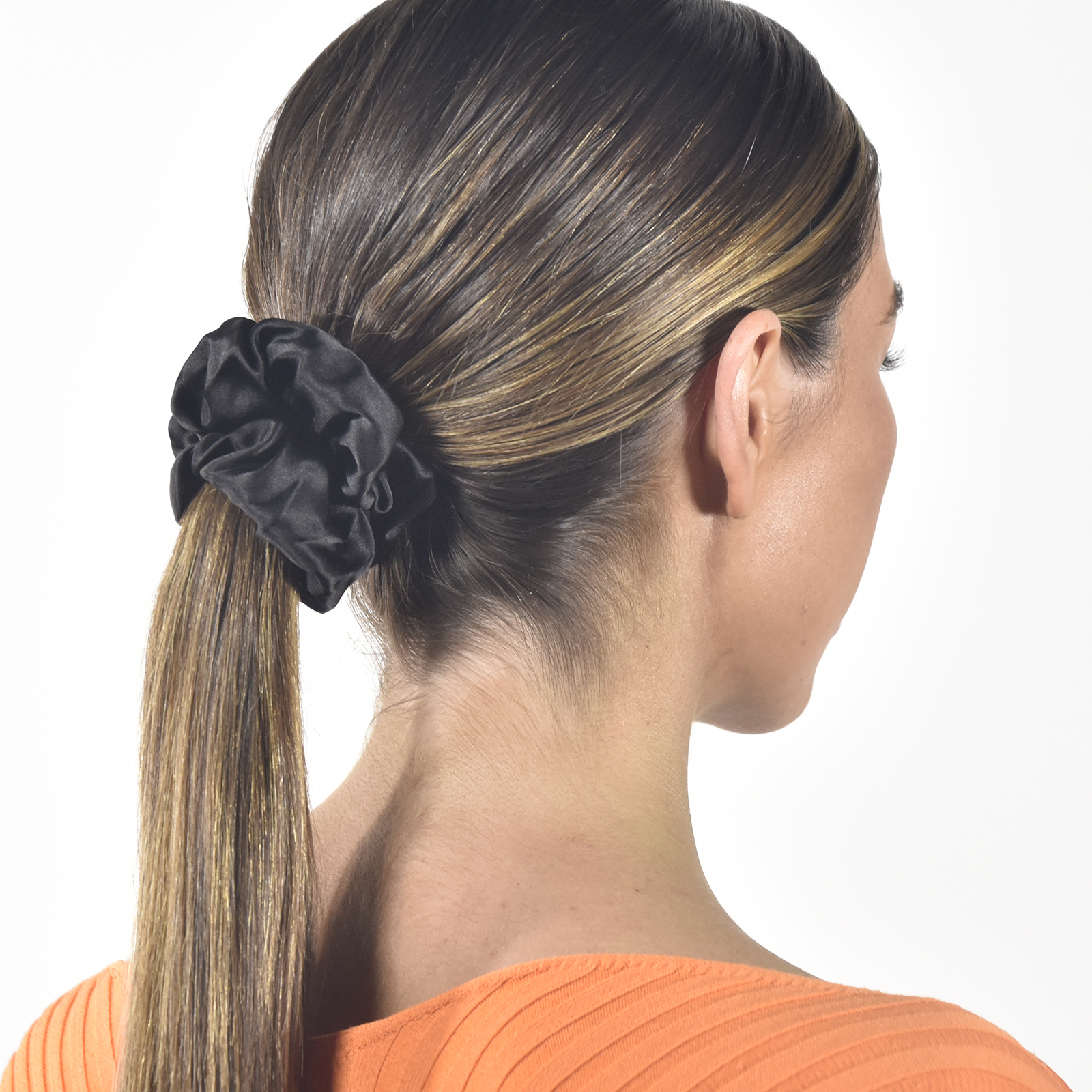 Classic hair styling essential with silk elegance and softness. Introducing Laurie Mulberry Silk Scrunchie (Black) - a chic and feminine scrunchie that makes your everyday styling effortless and sweet. This scrunchie is made of 100% mulberry silk in black colour neatly sewed. The elastic is sown inside and invisible from the outside. A piece that is easy to style and suitable for women and girls of all ages.