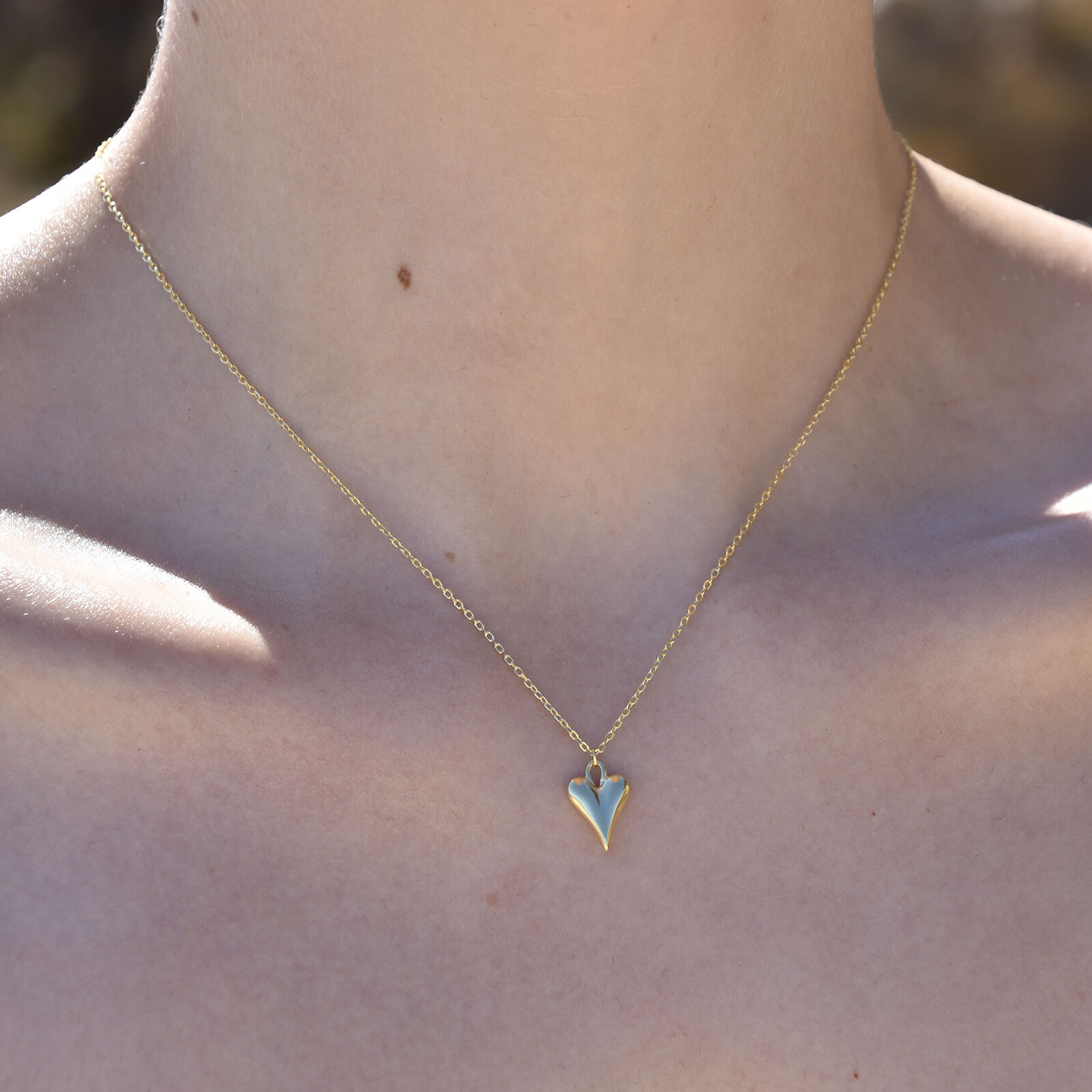 Feminine, classy and timelessly elegant. Introducing Lavinia Classic Love Heart Pendant Necklace (Gold Vermeil) - an artisan crafted love heart pendant neckpiece to add into your jewellery staples. This design features a French style (slightly elongated) love heart pendant smoothly polished to a reflective shine. This neckpiece is crafted in solid sterling silver with 2.5 microns of quality 18K gold plating (to Gold Vermeil Jewellery Standards). The love heart pendant is made in solid sterling silver (not hollow) with a quality weight. An adorable and classic piece that is always appropriate for all personal styles and occasions. Also perfect for creating necklace layering styles with other pieces. Hypoallergenic, nickel, cadmium and lead free.