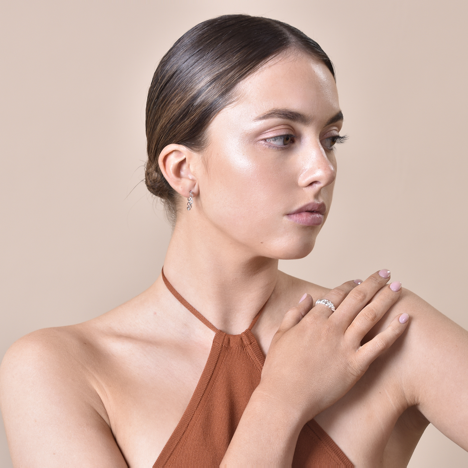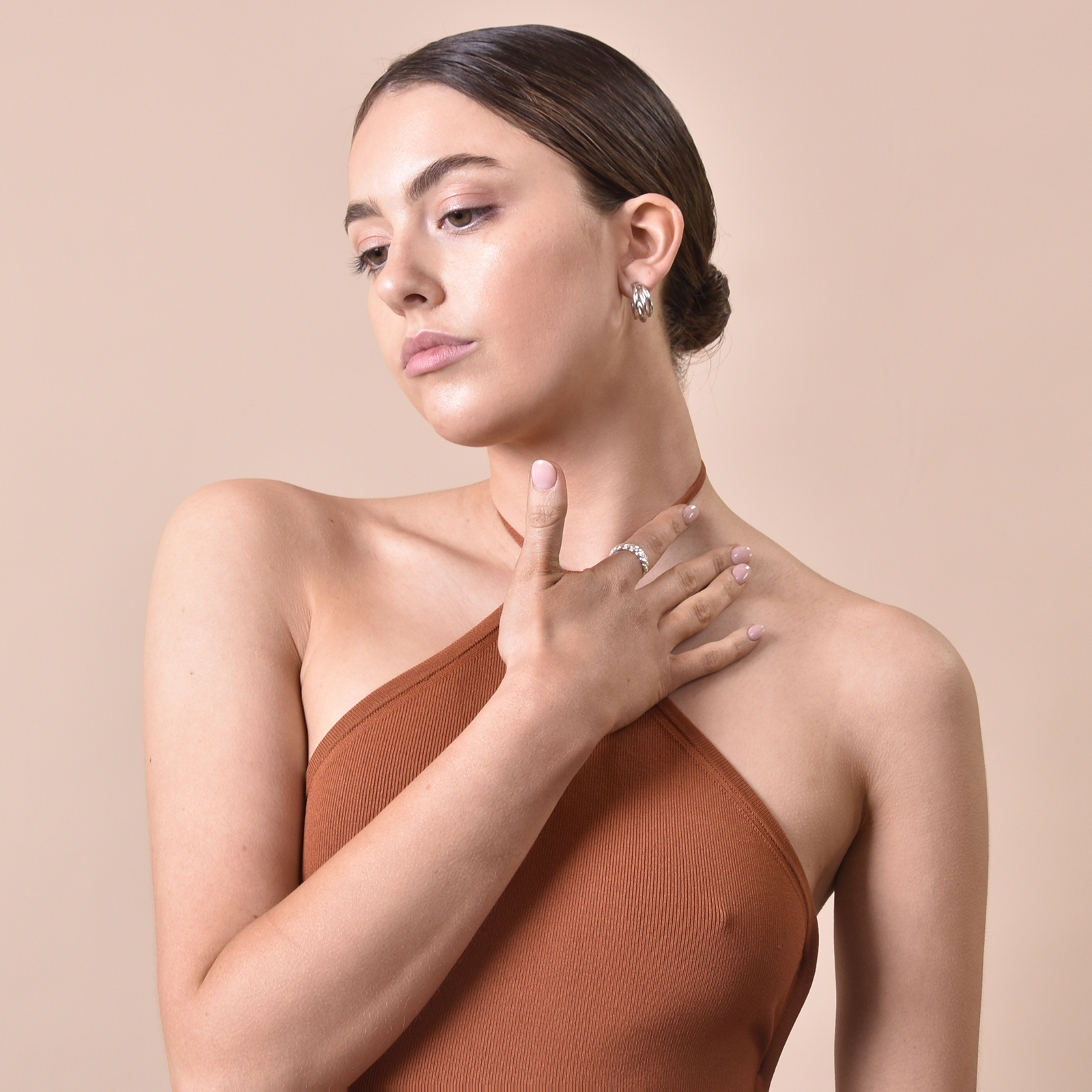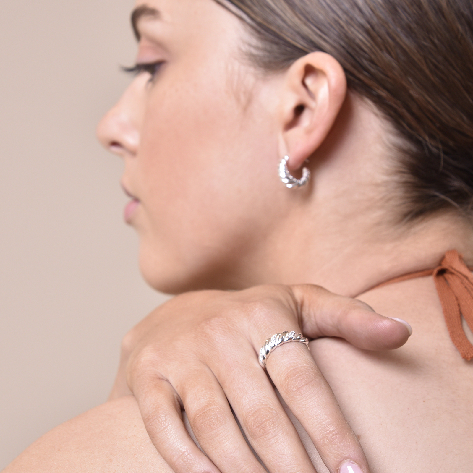 Chic, elegant and versatile for styling. Introducing Lenette Silver Twisted Open Ring - a French style croissant open ring with a subtle shimmer. This design features a semi-chunky twisted ring embellished with clear Austrian zircons on the front of the ring. The ring is made of solid sterling silver with white rhodium plating, ethically made to last. The inner diameter of this ring by default is 18mm. It can be easily adjusted manually for an ideal fit. A timeless finger beauty for modern, vintage, chic, ring stacking, formal, semi-formal, smart casual, casual, and everyday wear. Hypoallergenic, nickel, cadmium and lead free.