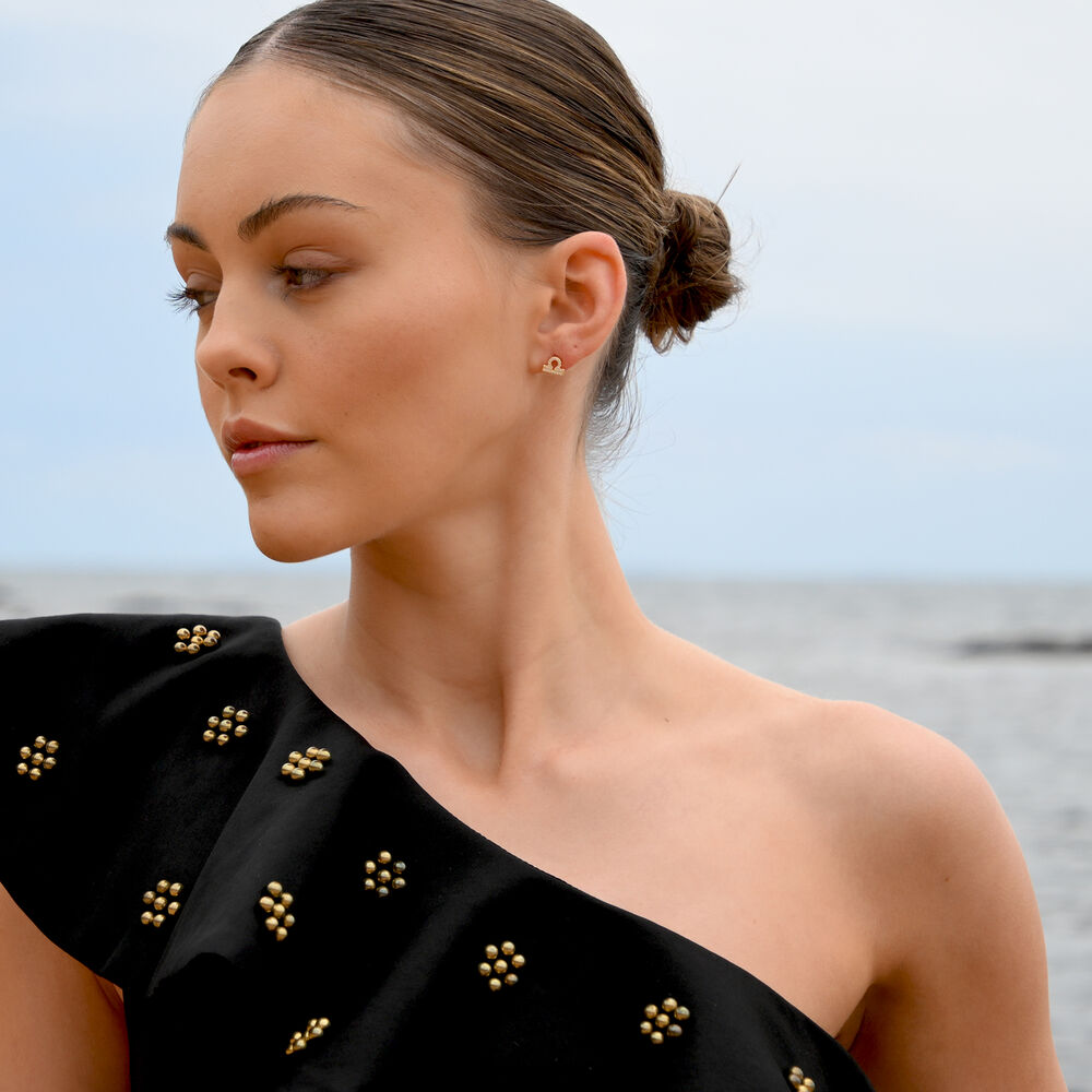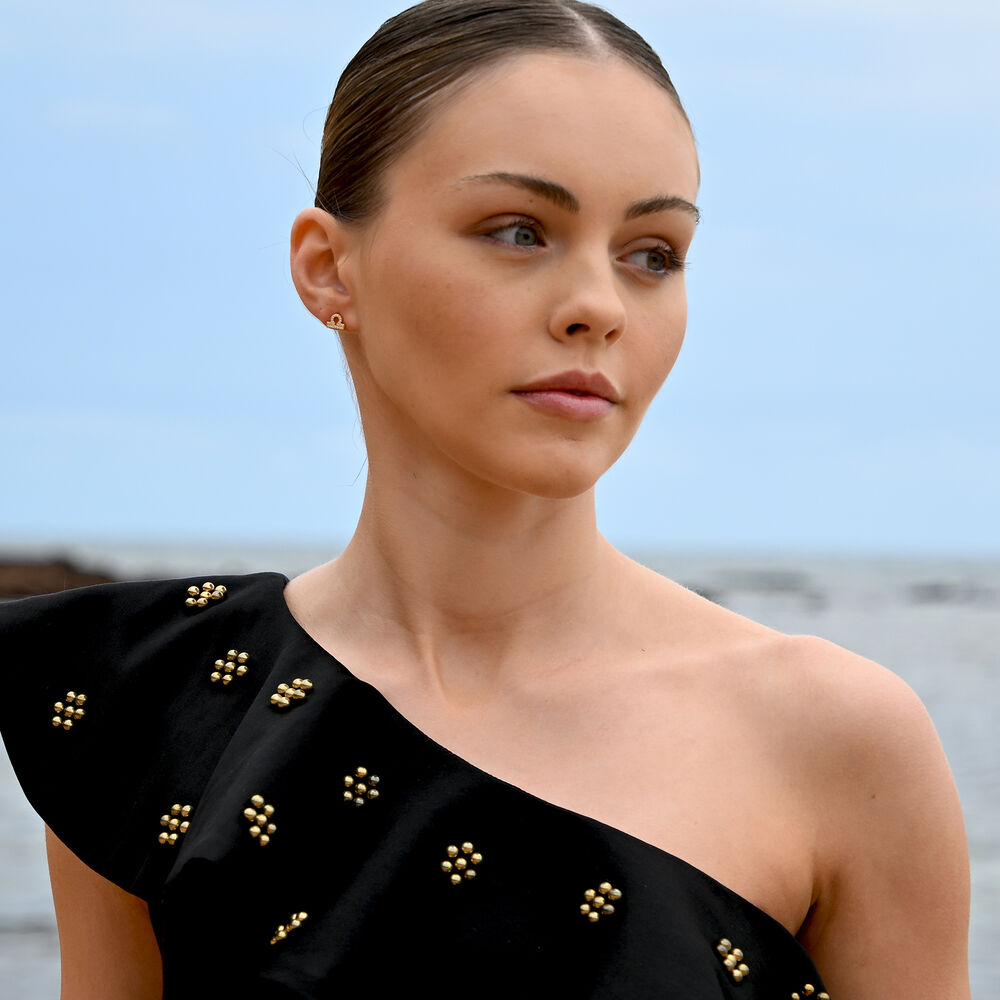 Libra Artisan Zirconia Pavé Stud Earrings (Gold)