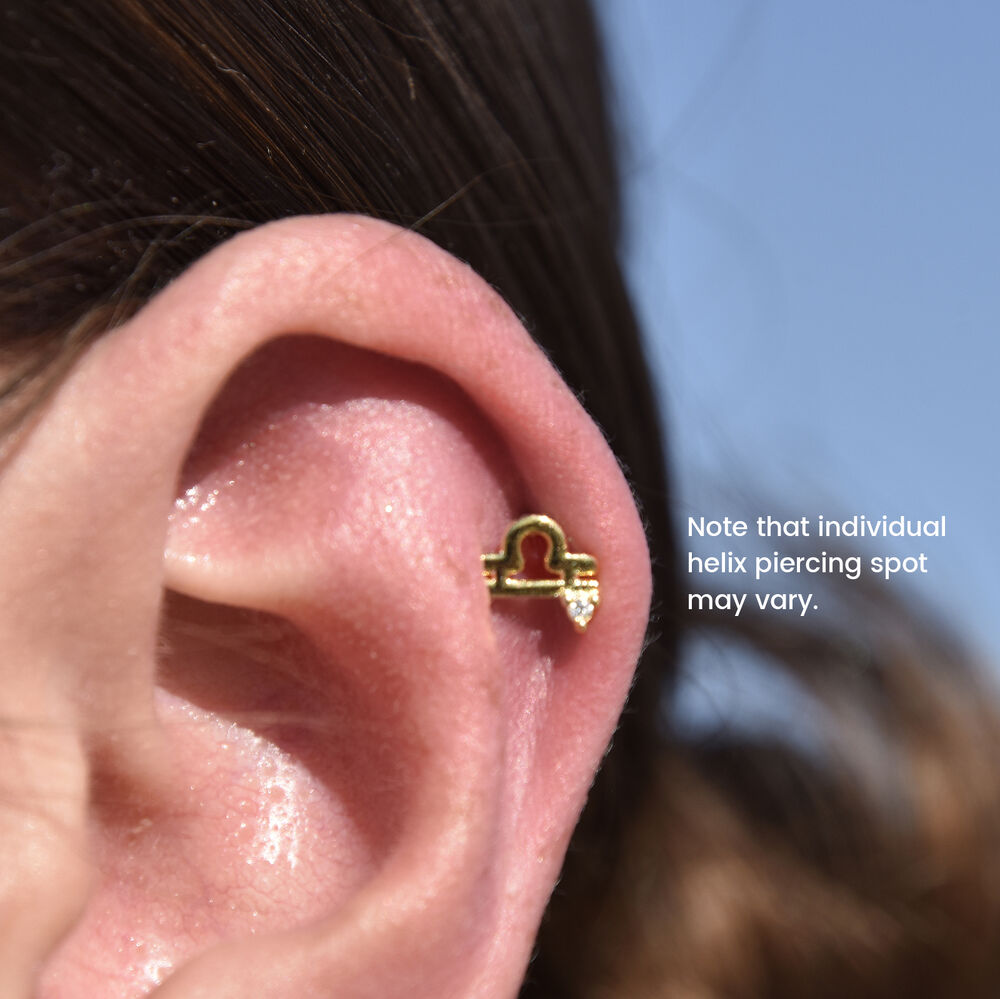 Culturesse 12 Zodiac Helix Earring Collection is designed with simplicity in mind along with meaningfulness in a delicate and refined form. As per our artisan jewellery ethics, each piece in this collection is crafted in solid sterling silver (nickel free) with 2 microns of 18K gold plating (average gold plating for fashion jewellery is around 0.7 - 1 micron). Each piece is adorned with high quality Austrian cubic zirconia, exuding a subtle sparkle in a chic and elegant form. Hypoallergenic, nickel, lead, and cadmium free. Available in 18ct gold or silver.