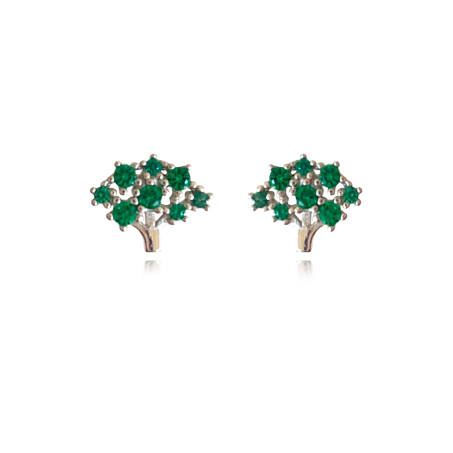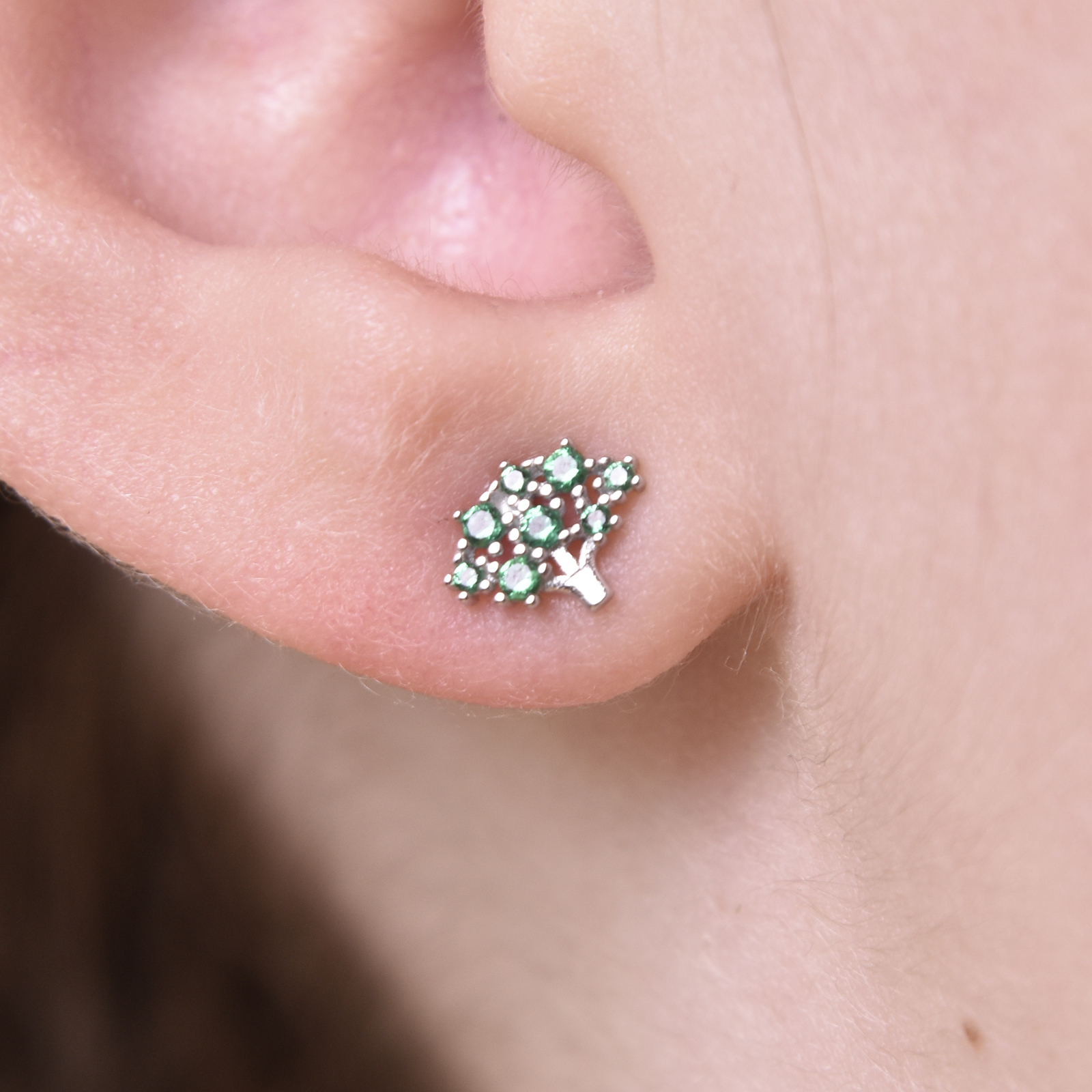 Culturesse dainty broccoli earrings made of solid sterling silver and Austrian green zirconias. Free from nickel, cadmium and lead, 100% safe for little ears. Suitable for babies, children, newly pierced ears, and for adult dainty earring lovers.