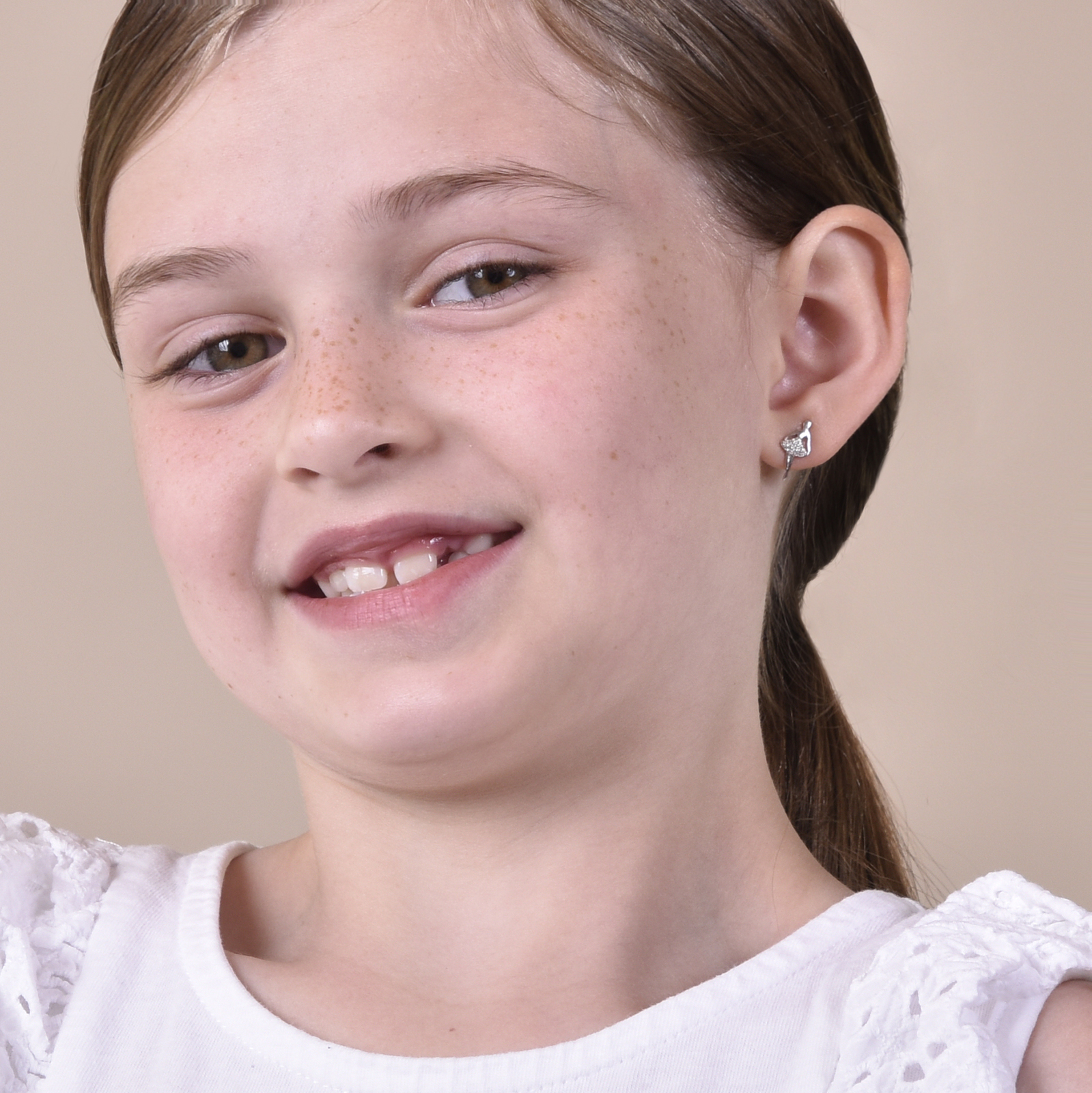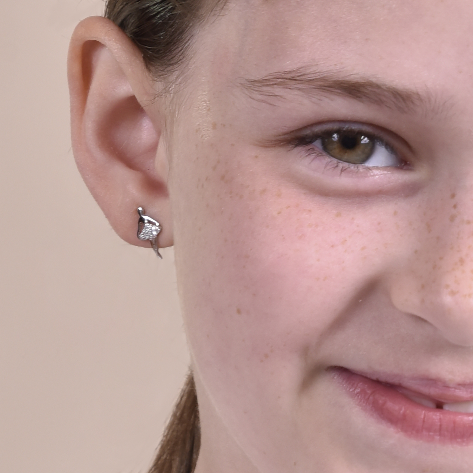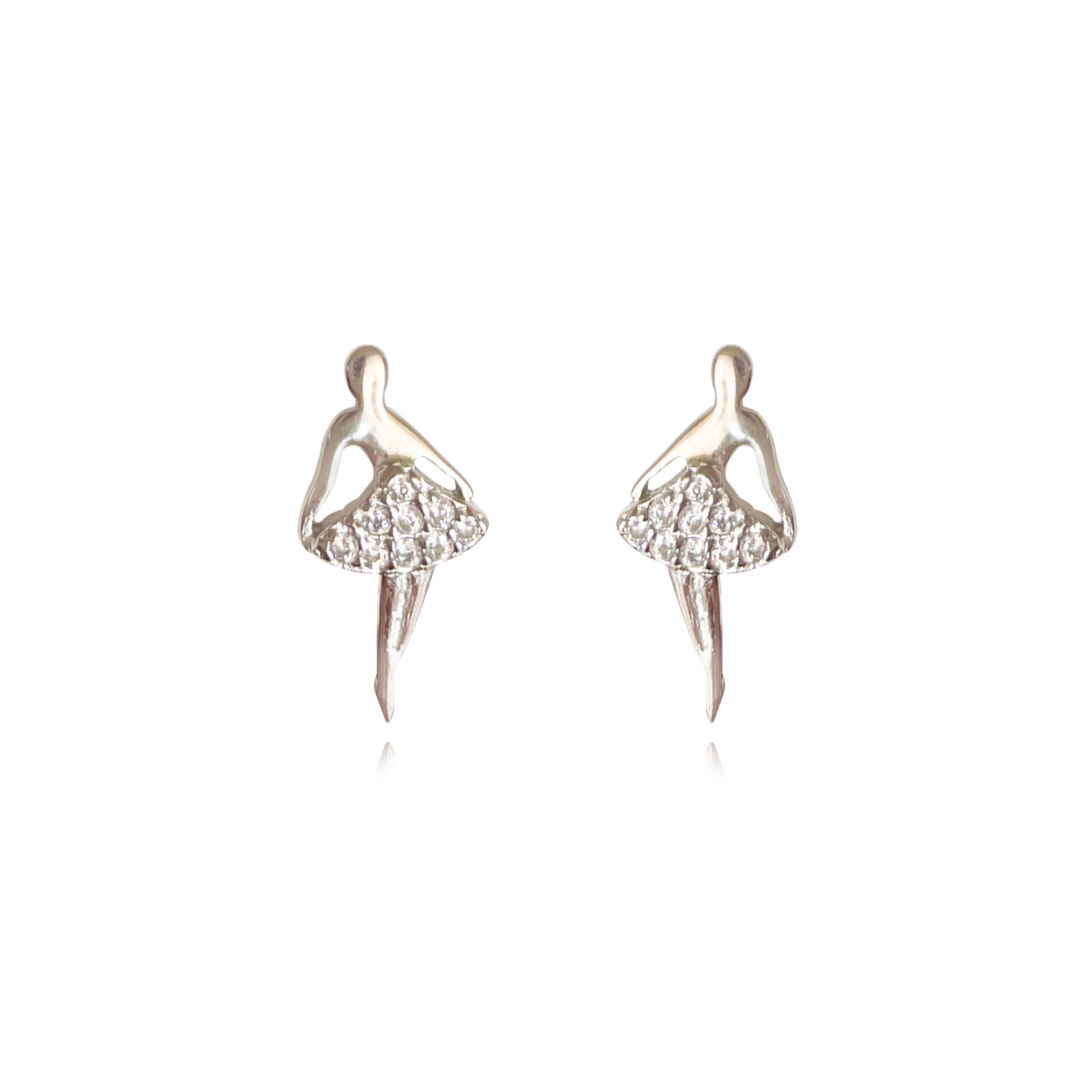 Culturesse dainty silver dancer earrings made of solid sterling silver and Austrian cubic zirconias. Free from nickel, cadmium and lead, 100% safe for little ears. Suitable for babies, children, newly pierced ears, and for adult dainty earring lovers.