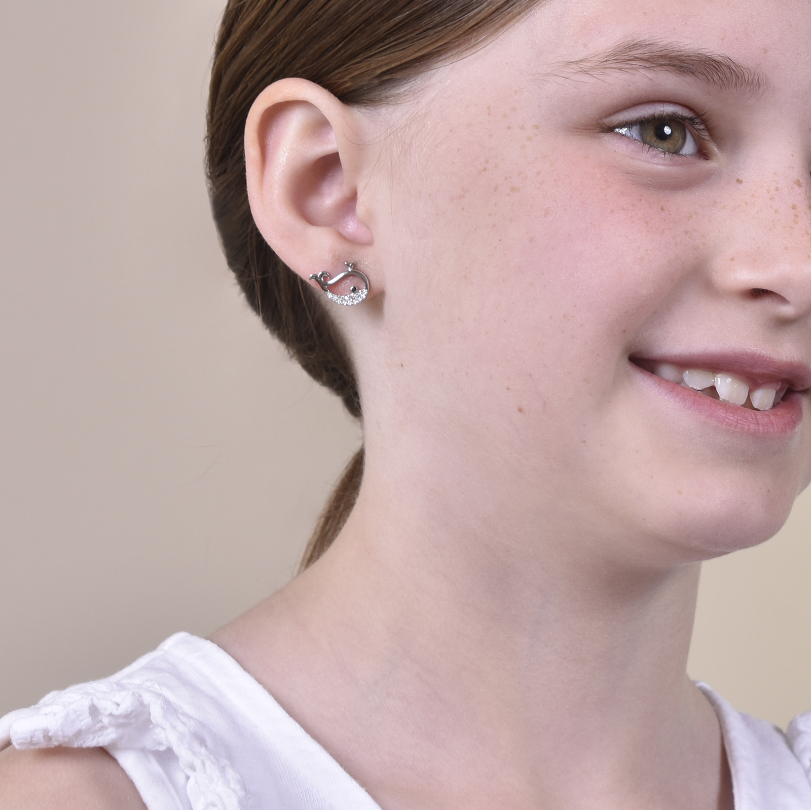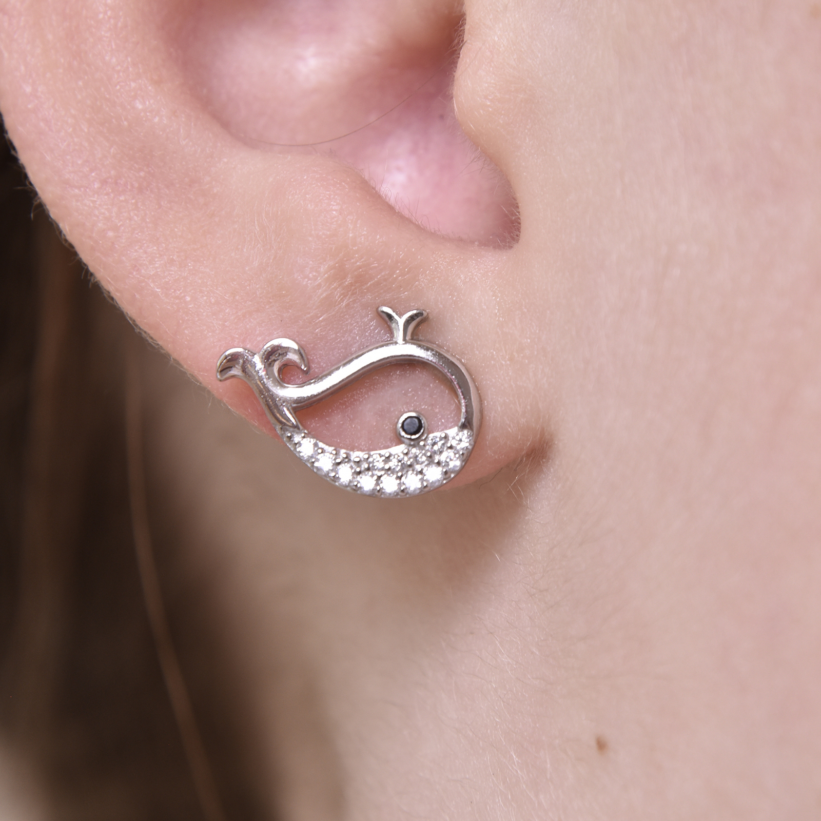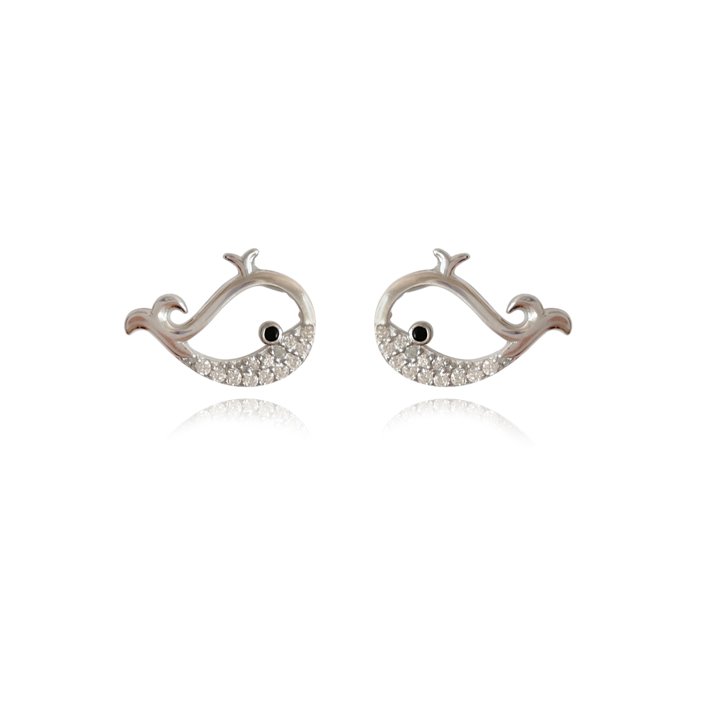 Culturesse dainty silver diamante whale earrings made of solid sterling silver and Austrian cubic zirconias. Free from nickel, cadmium and lead, 100% safe for little ears. Suitable for babies, children, newly pierced ears, and for adult dainty earring lovers.