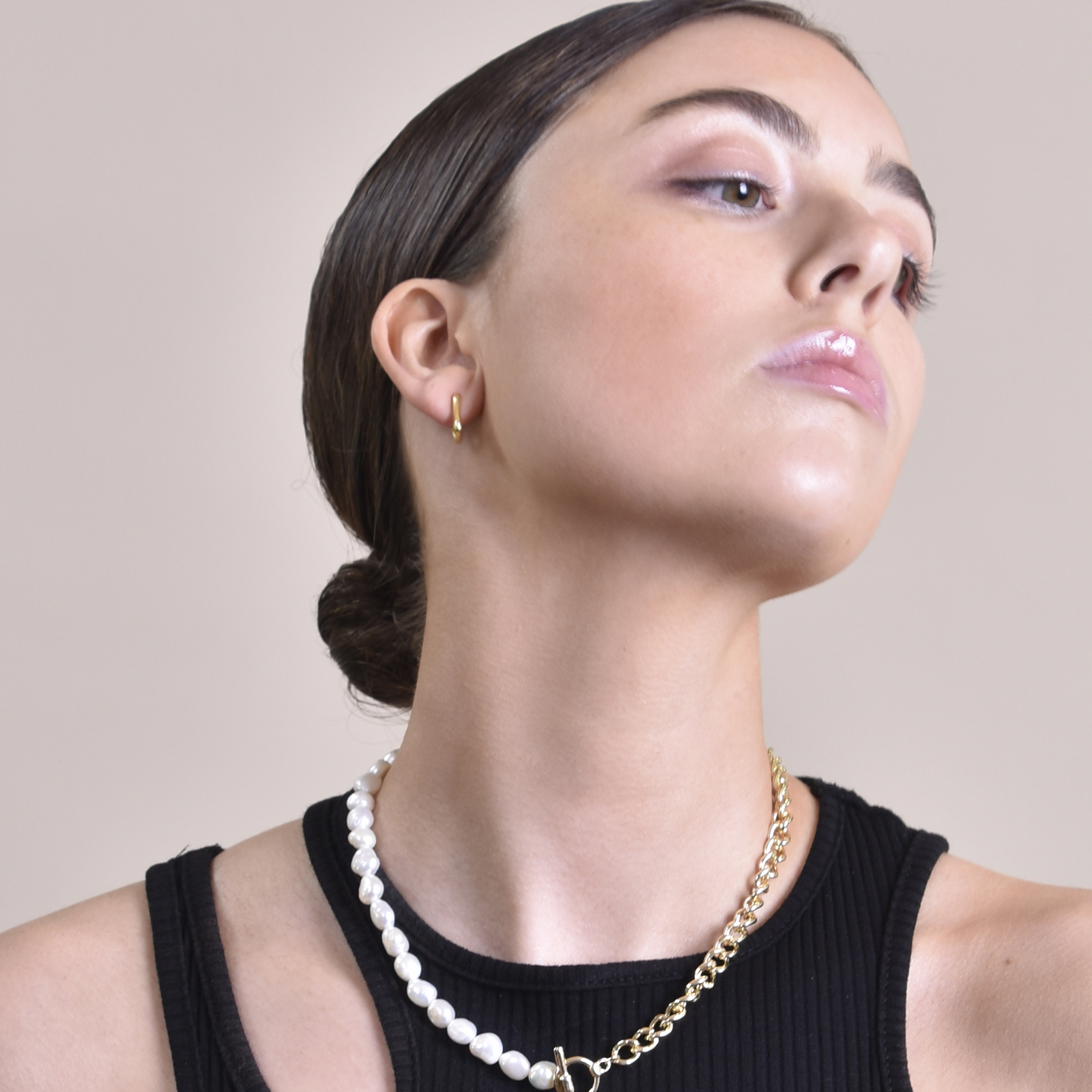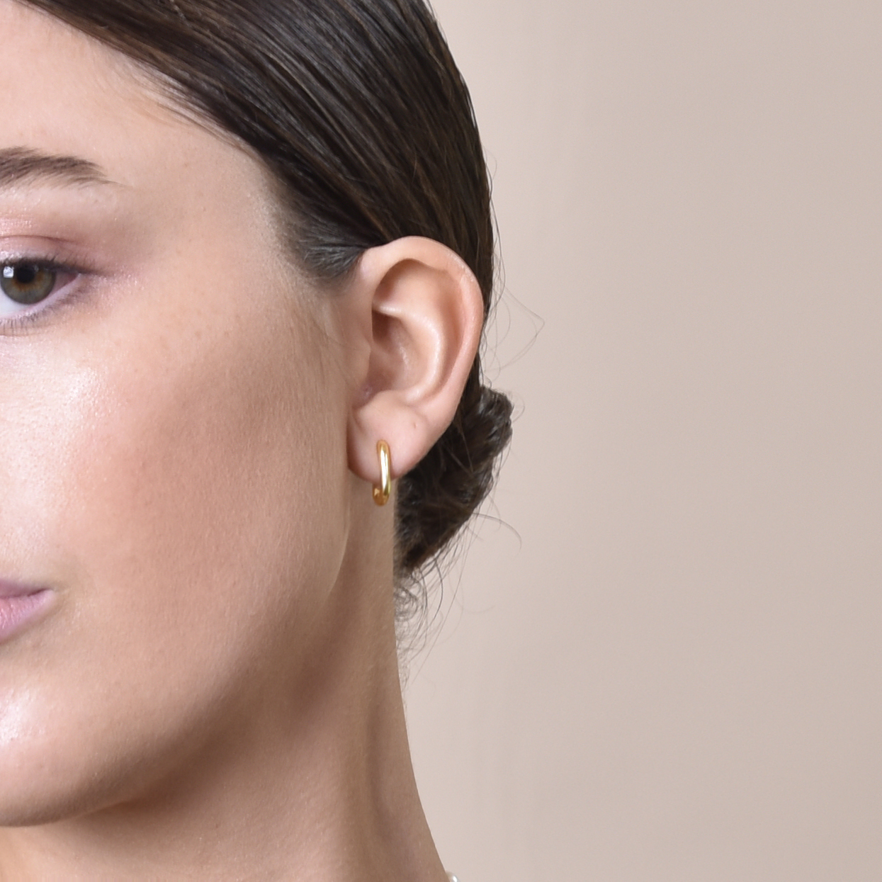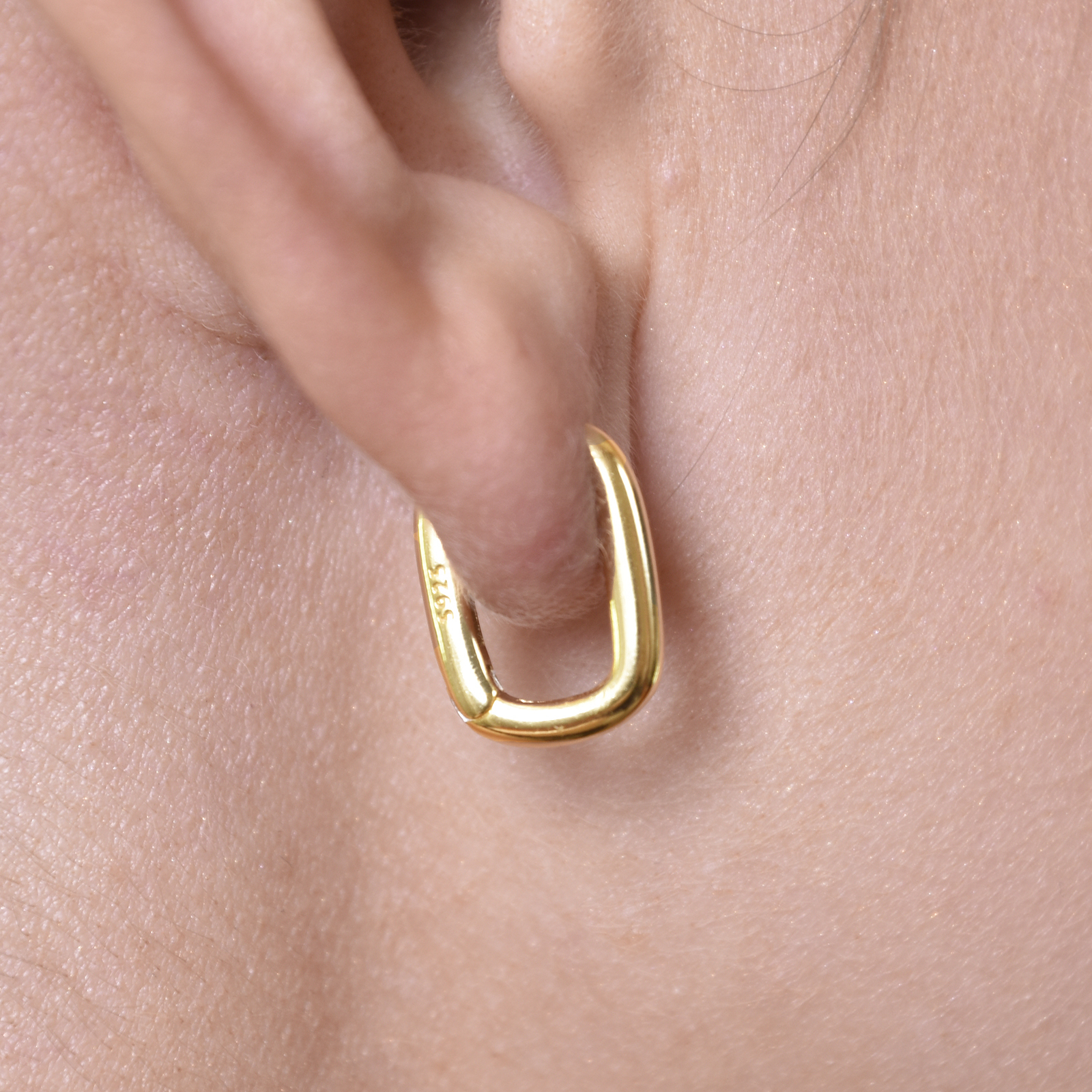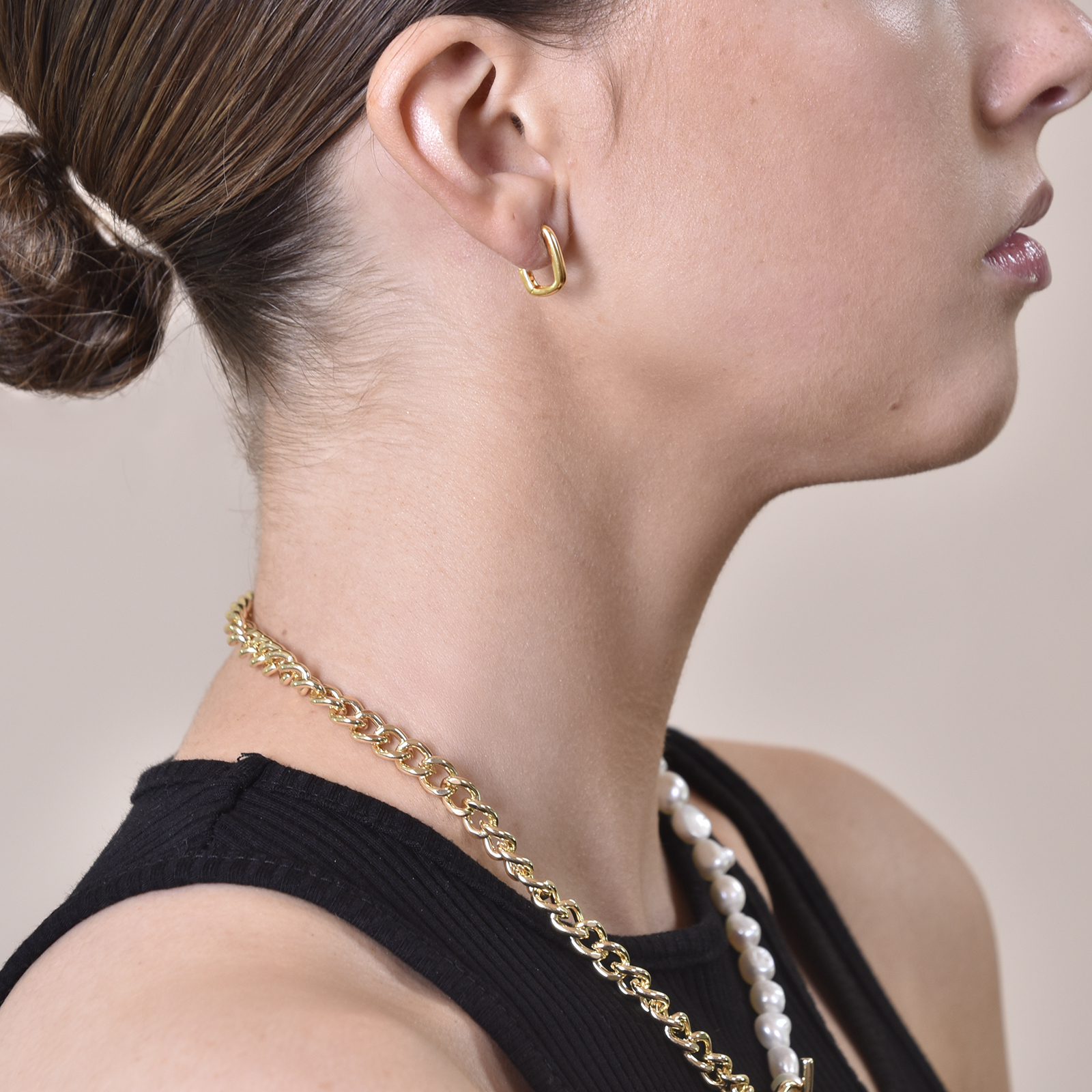 Modern, succinct, and versatile for styling. Introducing Loki Minimalist U Huggie Earrings (Gold) - an everyday style ear love for those who prefer something simple, timeless and wear-to-go. This design features oval shaped chain huggie earrings made of solid sterling silver and 18K gold plating, smoothly polished. The earrings are of a very comfortable weight for all day wearing and can also be worn as sleeper earrings. Perfect for women and girls of all ages and all personal styles. Also suitable for unisex wear. Hypoallergenic, nickel, cadmium and lead free.