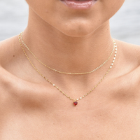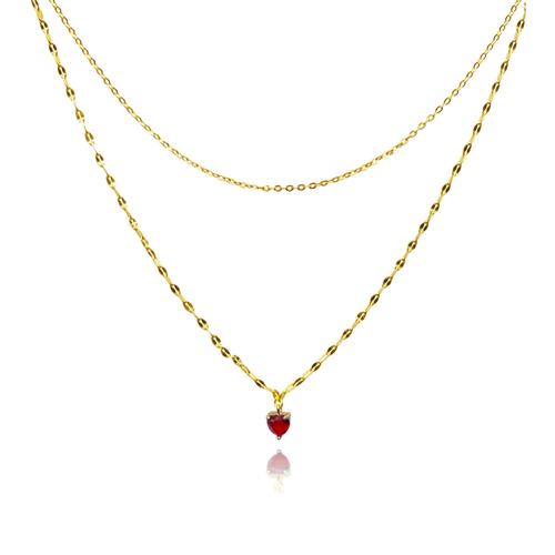 Romantic feminine neck layering with a French era. Introducing Lorabelle French Dual Chain Heart Pendant Necklace - a sweet and soft layering for a perfect gift of love. This design features a dual link with one box link chain and one standard fine chain - adorned with a love heart shaped Austrian red zircon. The necklace is made of sterling silver with 2.5 microns of 18K gold plating to Gold Vermeil Jewellery Standards. It is 38cm long including a 4cm adjustable link, allowing for a more flexible fit. Perfect for modern, retro, Parisian, feminine, chic, girly, dressy, semi-formal, smart casual, casual, everyday styles and more. Hypoallergenic, nickel, cadmium and lead free.