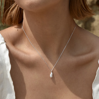 Crave your blessings in solid things. Introducing Louna Artisan Textured Drop Pendant Necklace (Silver) - a contemporary sculpture-inspired pendant piece for simplicity and texture lovers. This design features a solid textured droplet pendant attached to a standard gold chain necklace. This neckpiece is crafted in solid sterling silver with precious white rhodium plating for hypoallergenic, enduring wear and a brighter silver shine. This necklace is 45cm long including a 5cm adjustable link for a more flexible personal fit. Suitable for modern, contemporary, artsy, coastal, smart casual, casual, necklace layering, everyday style and more. Hypoallergenic, nickel, lead, and cadmium free. Available in 18ct gold or silver.
