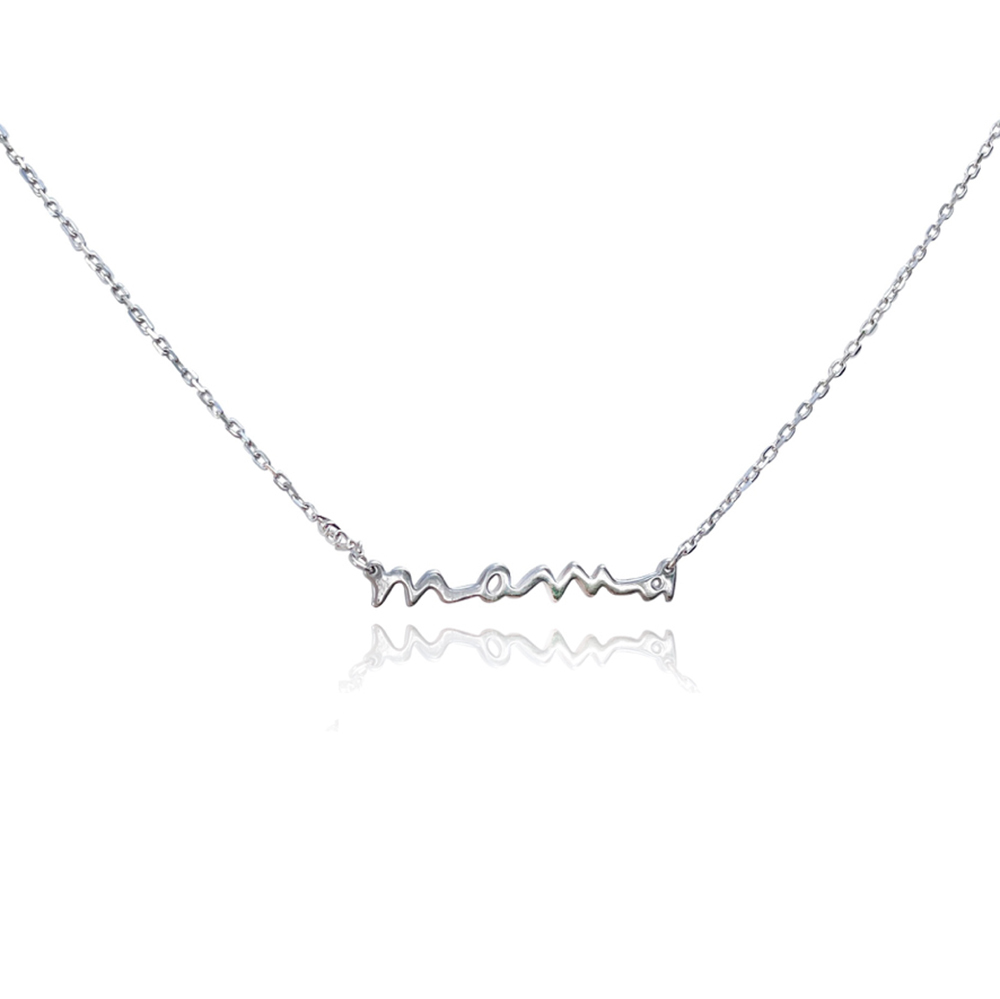 Delicate silver beauty with the power of love. Introducing Love You Mom Fine Silver Necklace - an everyday style fine neck love for all the beautiful mothers and more. This design features a joined writing text ‘mom’ attached to a fine silver necklace. This neck piece is made of solid sterling silver. It is 46cm long including 5cm adjustable link for your best personal fit. Suitable for all personal styles, everyday wear and necklace layering. Hypoallergenic, nickel, cadmium and lead free.