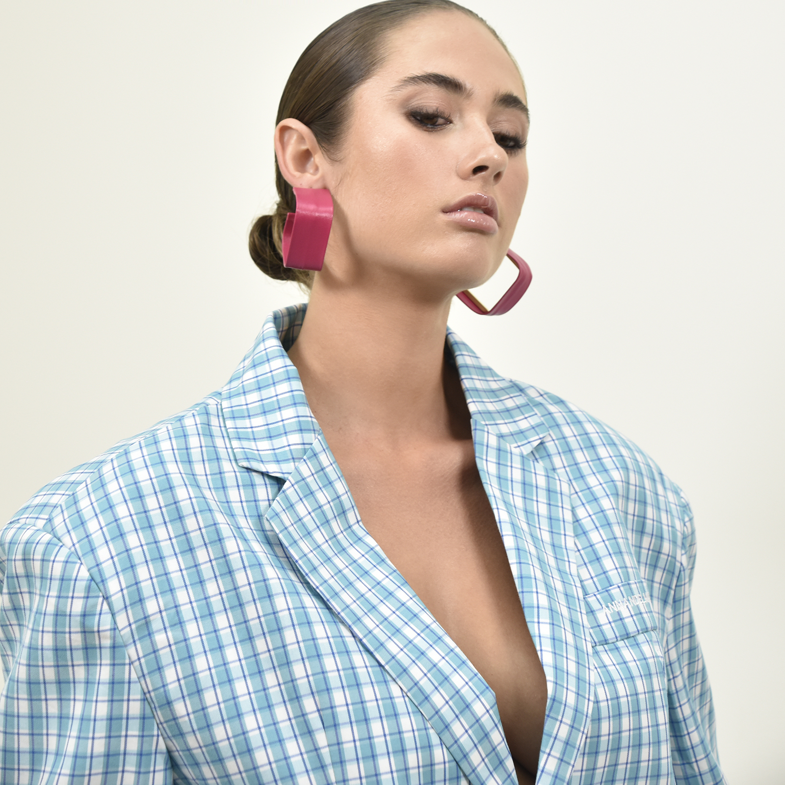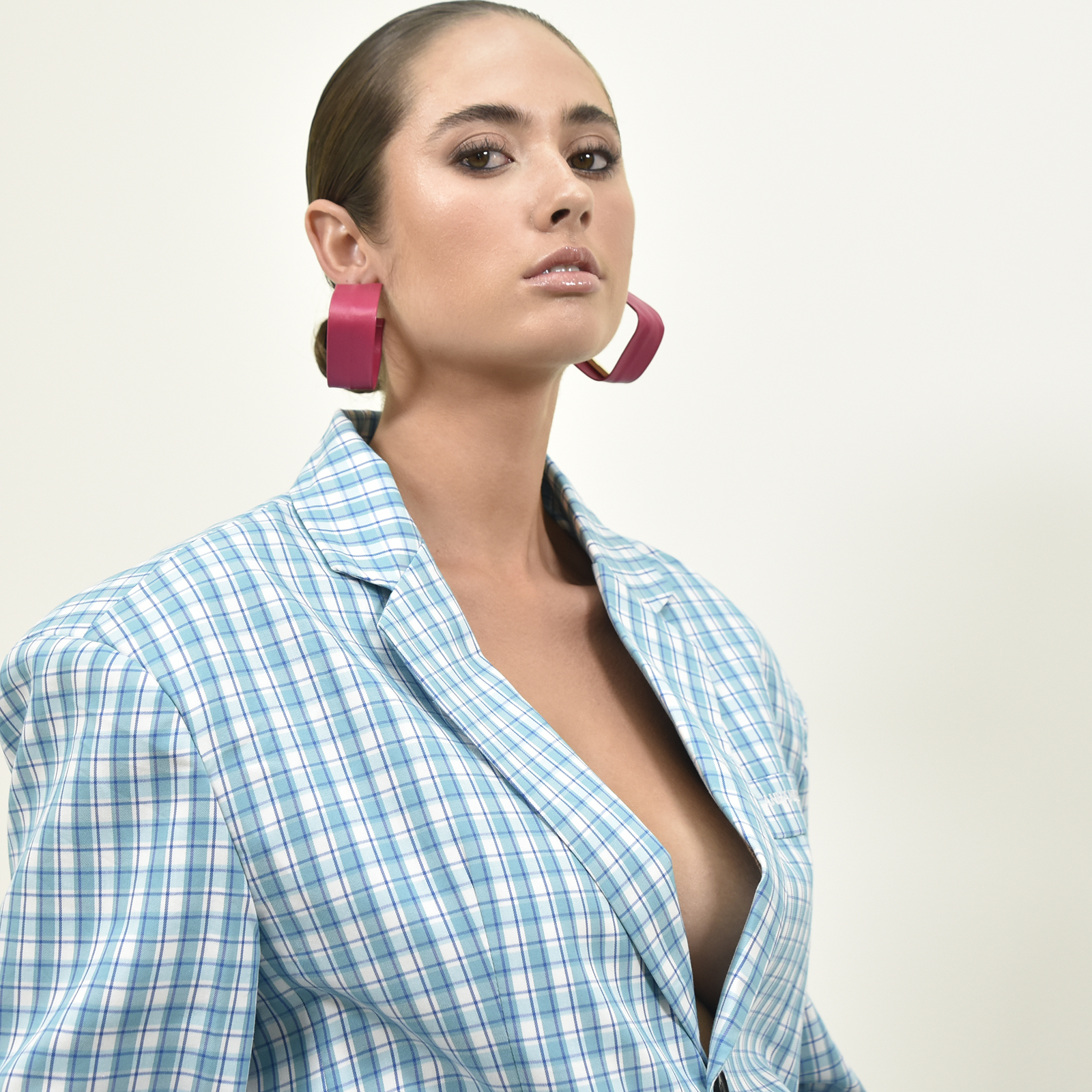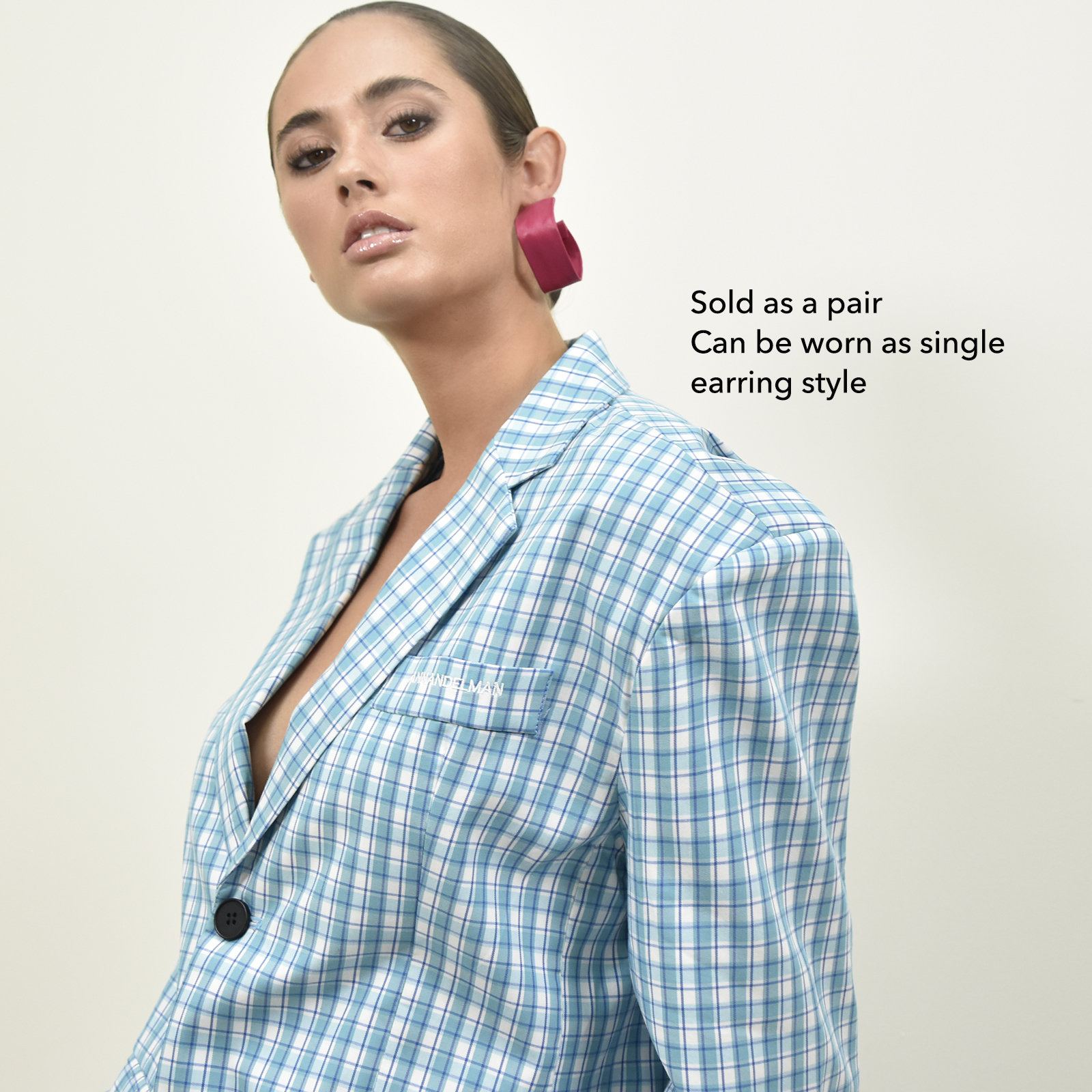 Bold, daring and outspoken. Introducing Luca Vegan Leather Statement Earrings (Magenta) - a contemporary geometric style ear love for style makers who are ready to make an ‘outside the norm’ statement. This design features open cube-framed earrings with a wide vegan leather strip coverage secured by an open square metal frame inside. The earrings come with sterling silver earring posts for hypoallergenic wear. Suitable for extravagant fashionistas who are not afraid to express themselves (whether wearing as a pair or a single earring style).