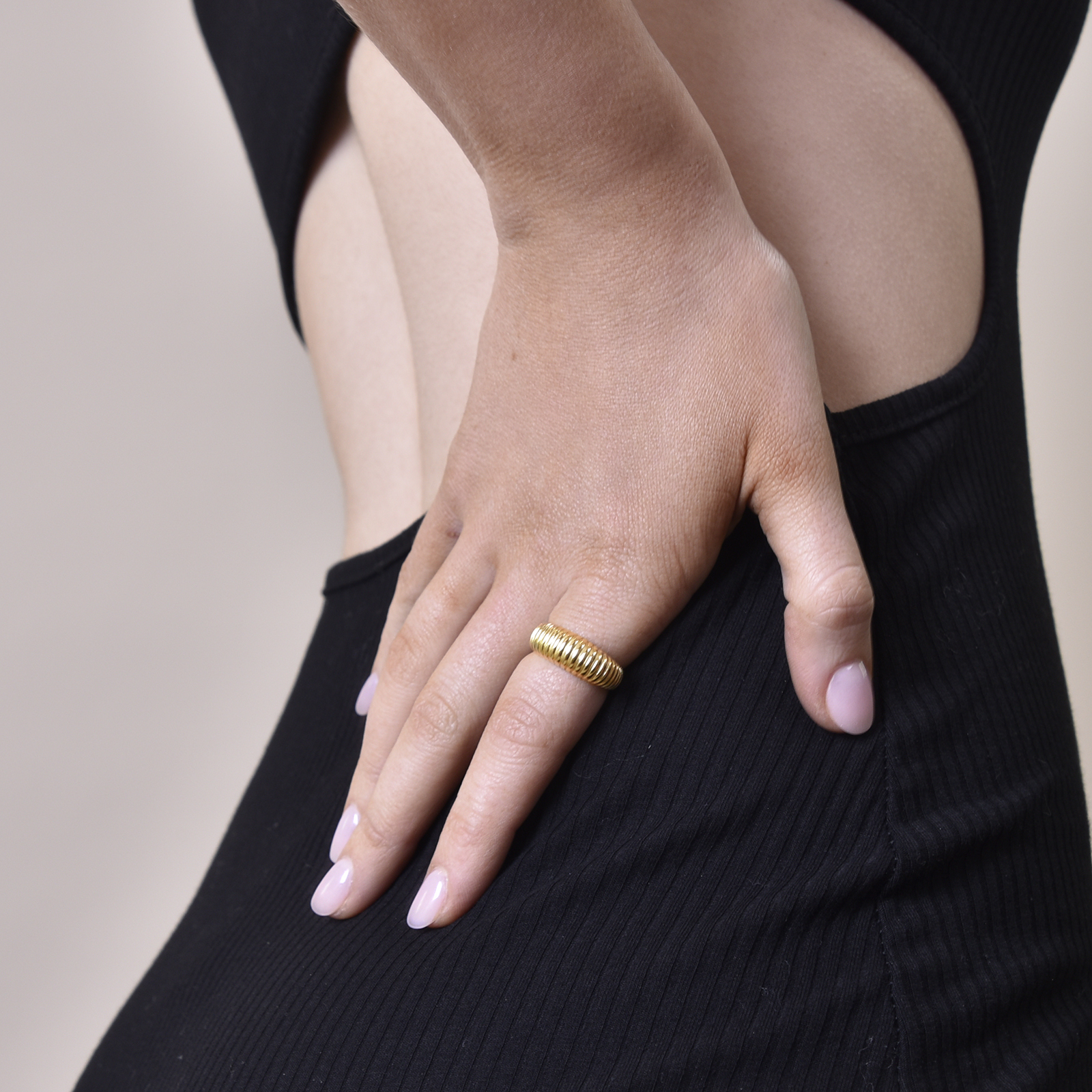 Chic, stylish and artsy. Intruding Lune Parisian Gold Vermeil Open Ring - a French style finger beauty to add a little more chicness to your everyday styling. This ring features a smoothly polished classic ring band with a ribbed pattern covering the middle and top of the ring band. The ring is made of solid sterling silver with 2.5 microns of 18K gold plating (to Gold Vermeil Jewellery Standards), giving the ring a gorgeous gold shine that endures. It is fully resizable and can be easily adjusted manually for the ideal fit. Suitable for all personal styles. Perfect for ring layering. Hypoallergenic, nickel, cadmium and lead free.