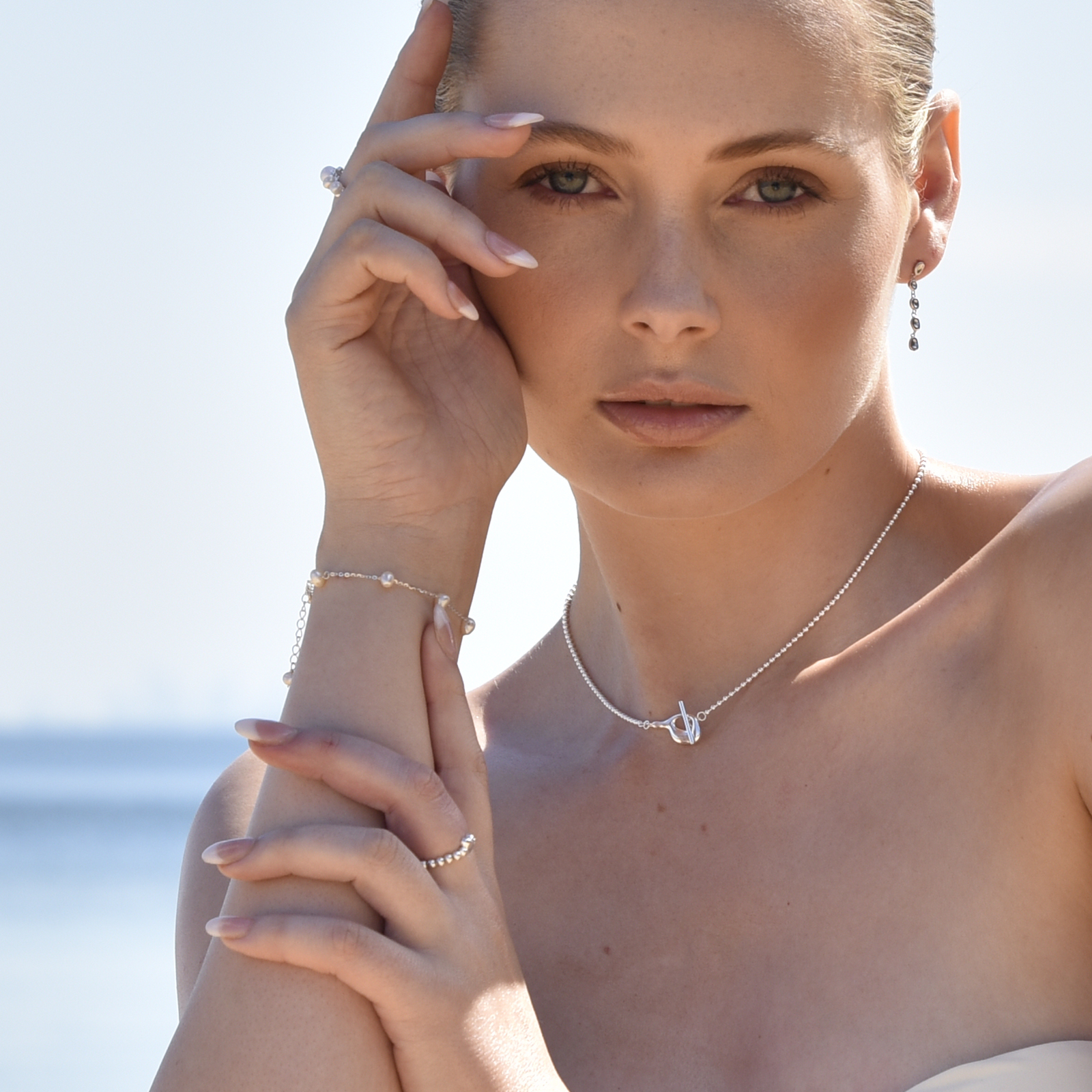Silver delicacy adorned with an adorable love heart. Introducing Lya Beaded Silver Heart Ring (Stretchable) - a stylish and light-hearted finger beauty for women and girls of all ages. This design features a stretchable beaded silver ring with a love heart shaped bead in the middle. This ring is made in sterling silver with precious white rhodium plating for an extra anti-tarnish protection and a brighter silver shine. Perfect for chic, casual, ring layering, and day-to-day wear. It also makes a sweet gift for the one you appreciate and love. Hypoallergenic, nickel, cadmium and lead free.