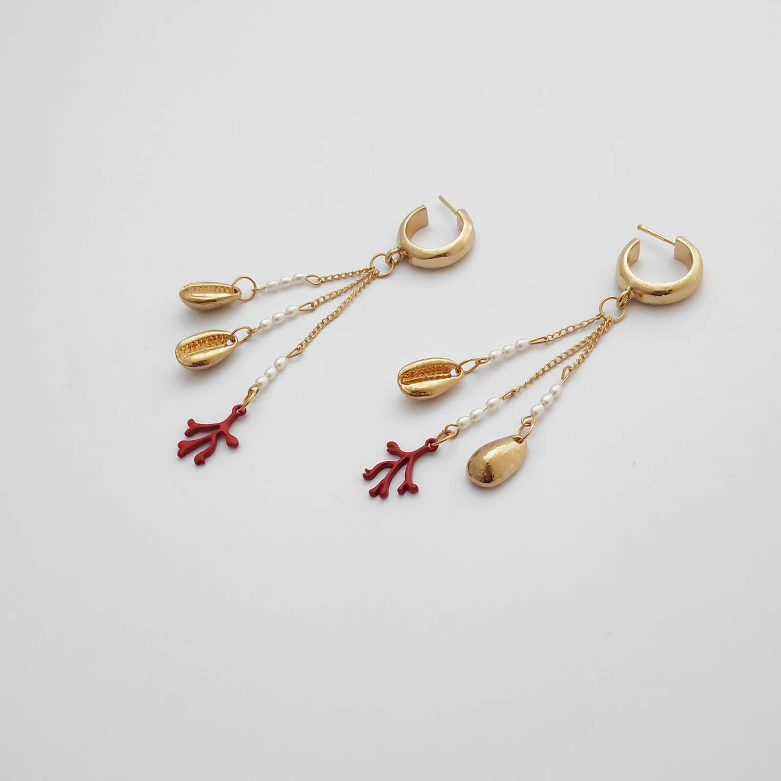 Stylish, fun and full of dangly coastal vibes, Lyla Shell & Coral Earrings make a pop and chic statement for modern muses who prefer something eye-catching. The classic combination of gold and red make your whole appearance pop even when wearing very simple clothing. Perfect for beach, coastal, summer, chic, casual and semi-formal occasions.