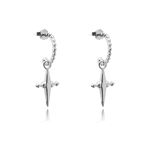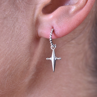 Dainty, chic, timeless, versatile and enduring. Introducing Lyre Silver Cross Drop Earrings - modern and trendy cross-style earrings for your elevated everyday styling. This design features drop pendants with a unique cross shape suspended from delicate C shaped hoops. Each piece is made of solid sterling silver with rhodium plating, ensuring durability and comfortability for wearing. This earring style is very versatile in styling and can go harmoniously with modern, minimalist, artsy, punk, casual styles and more. Hypoallergenic, nickel, cadmium and lead free. Allergy free.