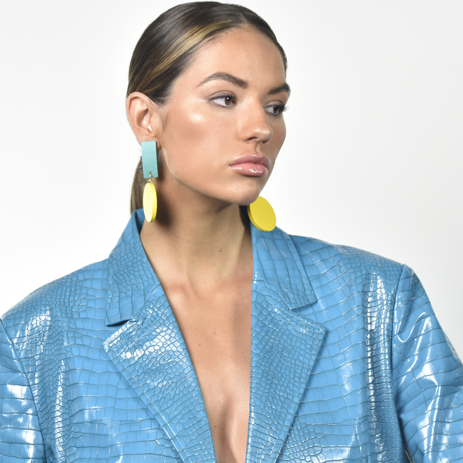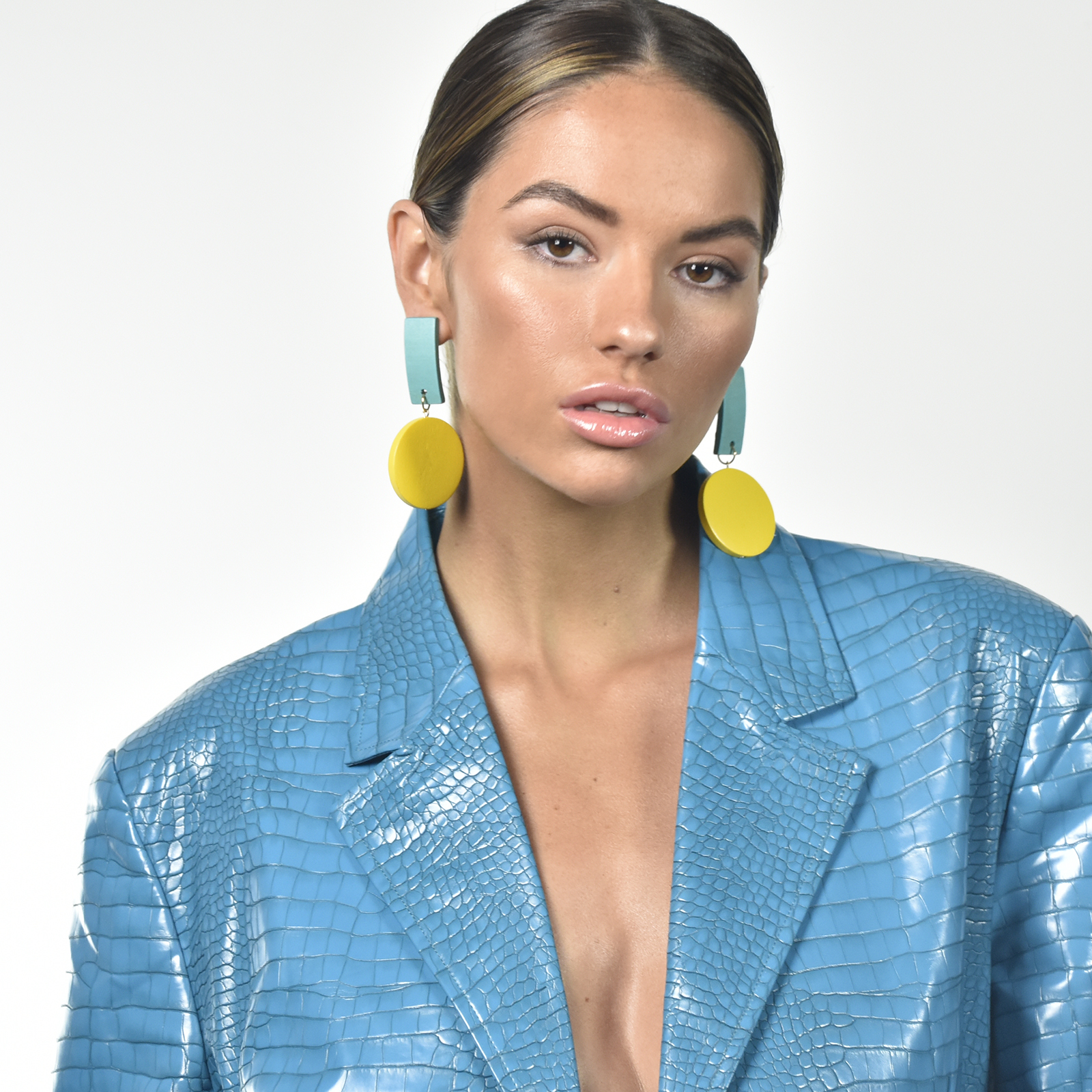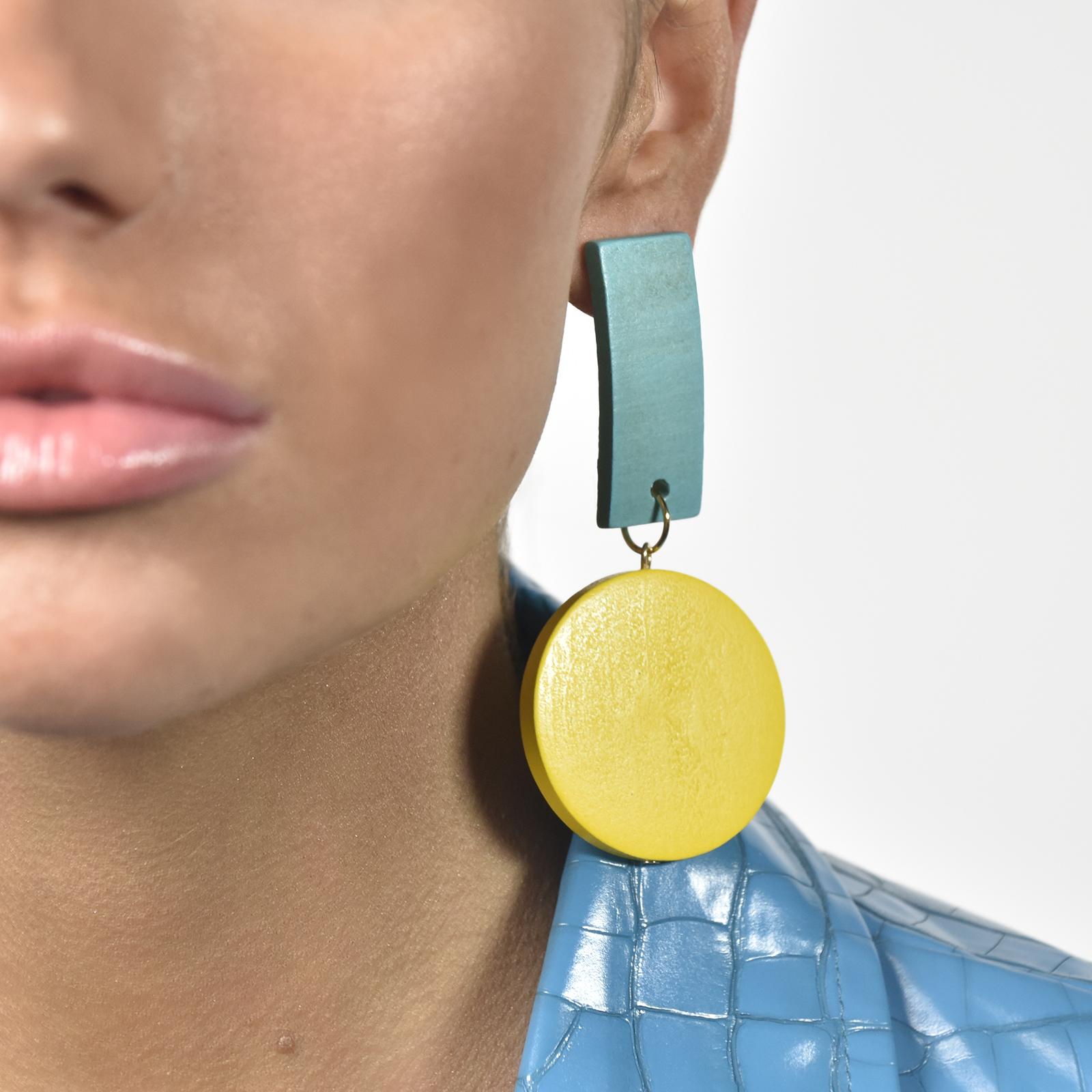 Brighten your styling with an eye-catching drama drop. Introducing Maci Geo Oversized Wood Craft Earrings - an oversized contemporary style ear love bringing fun and drama to your styling. This design features a lightly curved vertical rectangular top connected with a round drop, crafted in wood. Despite the big size, each earring is 6.6g in weight, making it light and comfortable when wearing. The earrings come with surgical steel earring posts for hypoallergenic wear. Perfect for lovers of statement and colours.