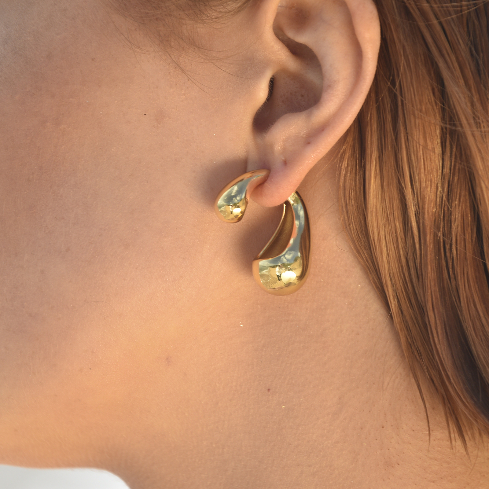 Make it simple but memorable. Introducing Maddox Waterdrop Earrings (Gold) - a modern art inspired sculptural design embracing asymmetric beauty. The earrings feature chunky hollow waterdrops of different length (with the longer one being the earring closure), forming a ‘hug’ around and down your earlobe. The earrings are made in environmental friendly stainless steel with 18ct gold plating. Perfect for modern muses who prefer something asymmetrical and unique. Available in gold or silver.