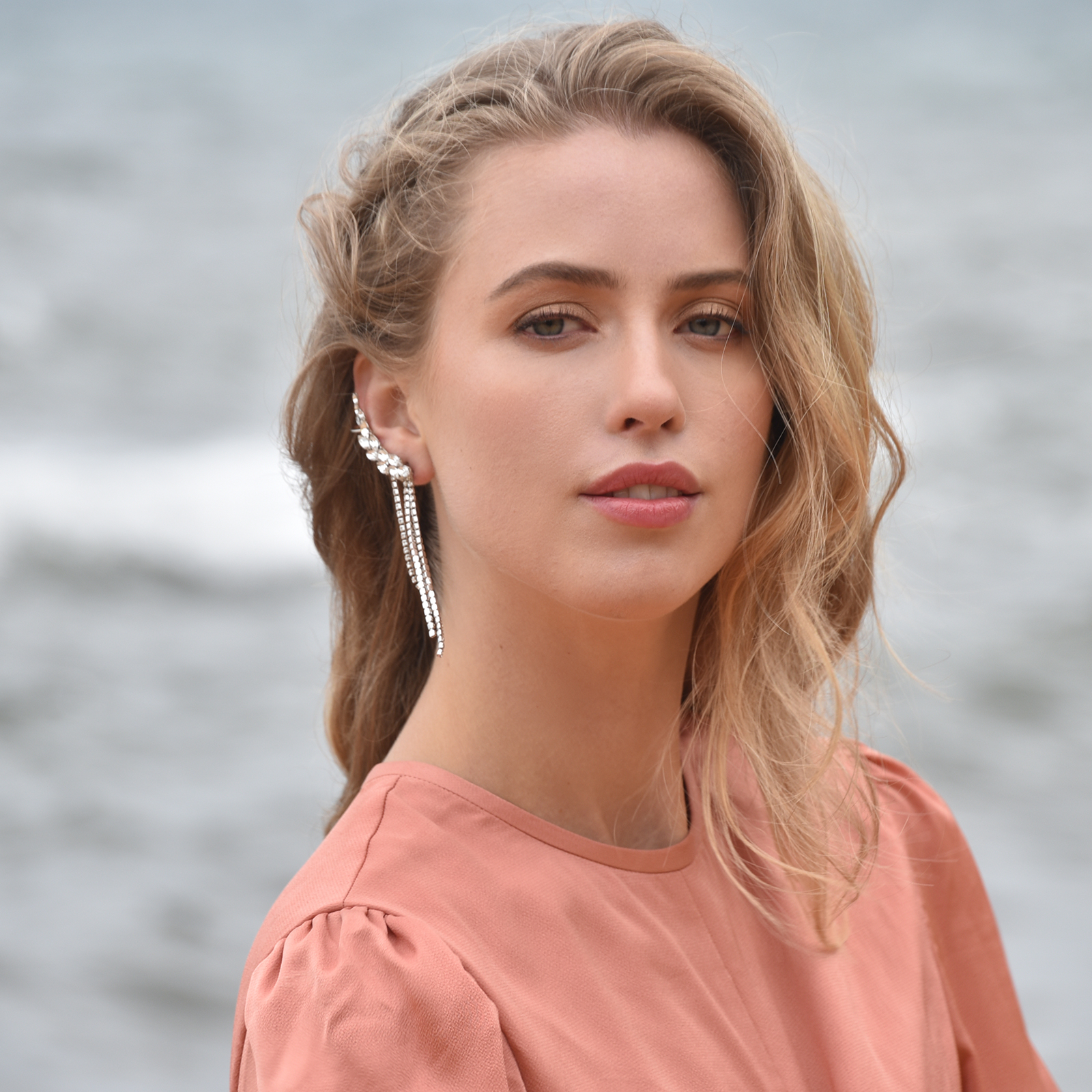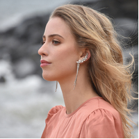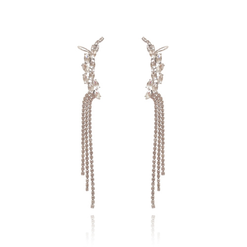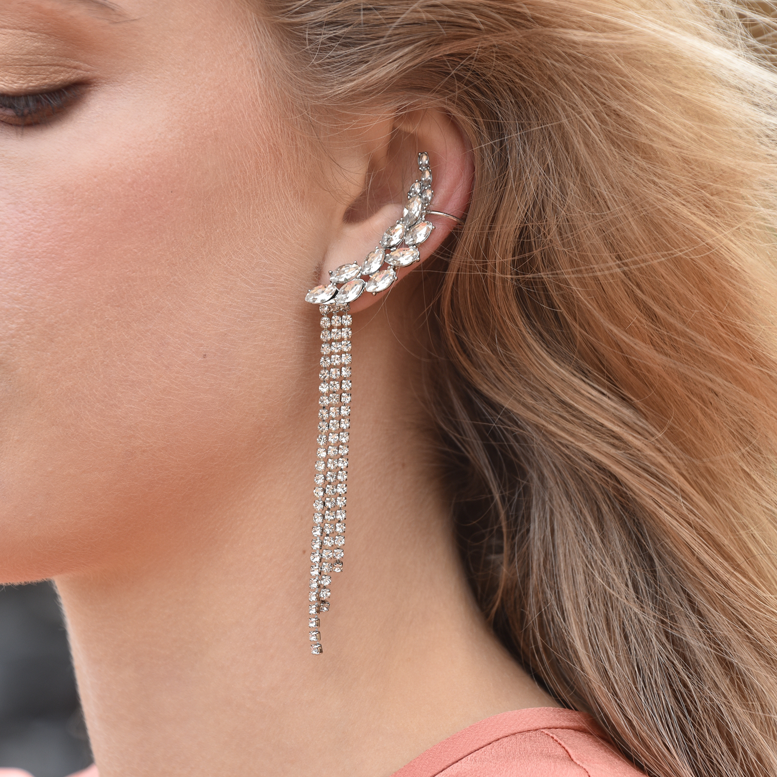 Beautifully attached to you, introducing Madelyn Attached To You Earrings - a shimmering and delicate ear love that embraces quirkiness and uniqueness. This design is crafted in environmentally friendly stainless steel (nickel free) with crystal-encrusted diamantes and silver plating, giving the earrings a bright shimmer. Featuring the elements of tassel, climber and cuff, this creative design can be very versatile in styling. When being styled with feminine dresses, it enhances your elegance; while being styled with suits/blazers and minimalist/contemporary clothing, it enhances your modern attitude. Be playful and explore your styling potentials.
