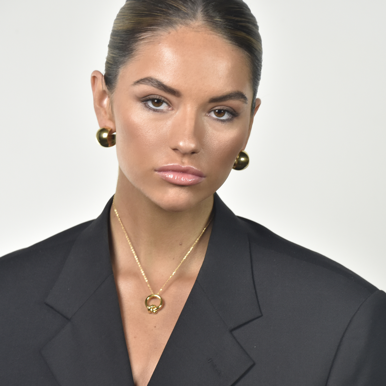We’d rather ‘knot’. Introducing Manon Artsy Solid Knot Pendant Necklace (Gold Vermeil) - a contemporary style pendant necklace for modern muses and artsy souls. This design features a solid loop knot attached to a fine chain necklace, smoothly polished to a high shine. This neckpiece is crafted in solid sterling silver with 2.5 microns of quality 18K gold plating (to Gold Vermeil Jewellery Standards) to ensure hypoallergenic wear and durability. The pendant is made solid (not hollow) with a quality weight. This necklace is 44cm long. Perfect for modern, artsy, creative, chic, simple, minimalist, necklace layering, smart casual, casual, everyday styles and more. Also suitable for unisex wear. Hypoallergenic, nickel, cadmium and lead free.