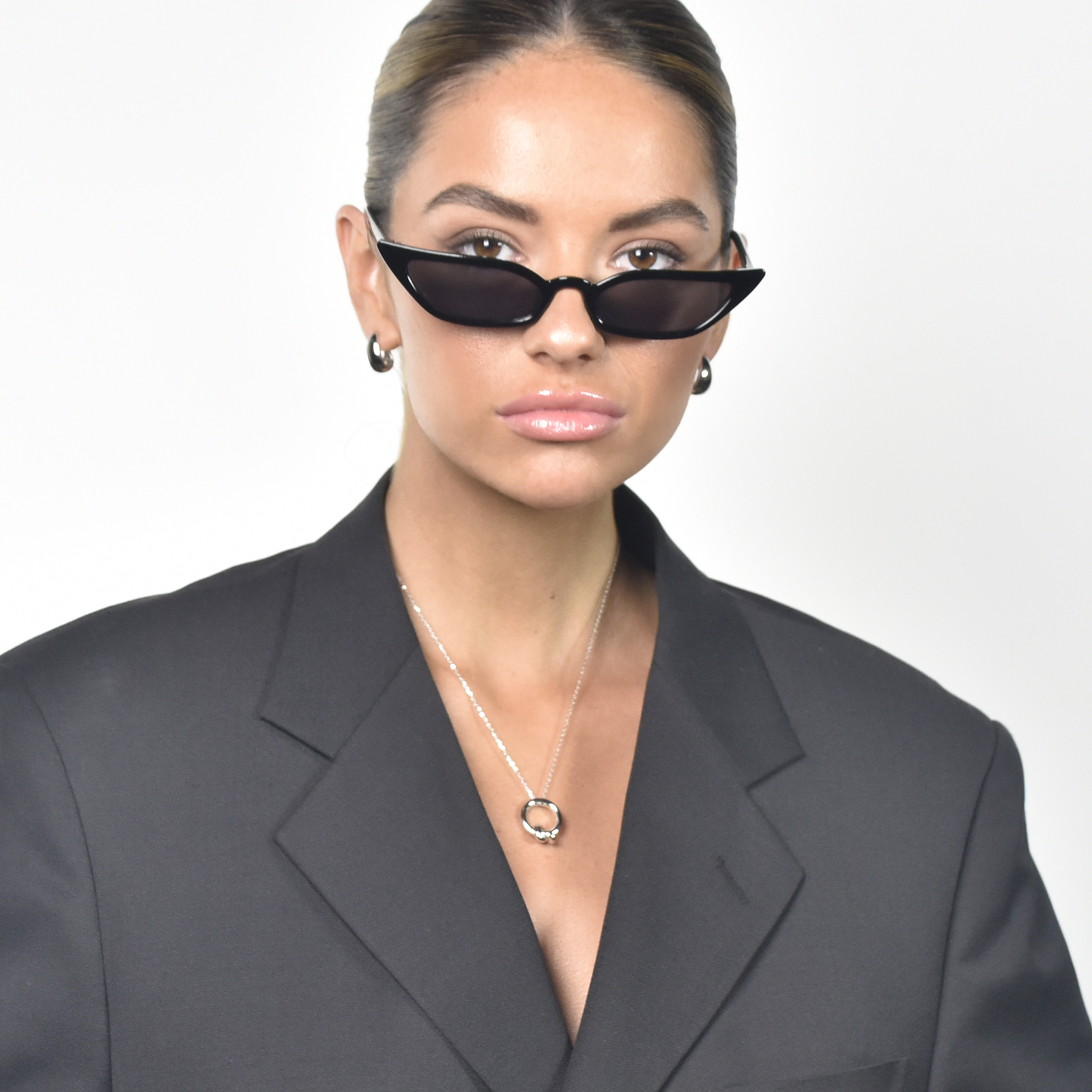 This necklace is 44cm long. Please kindly note that the position of the pendant necklace sitting on your chest can vary from individual to individual depending on your top size. Model is a size 8.