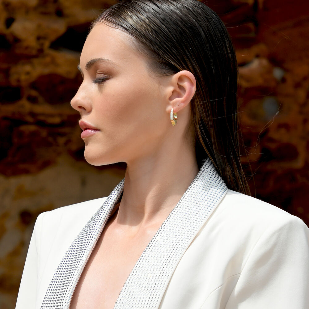 Compact yet distinctive, the Marlowe Huggies sit close to the ear for effortless everyday wear, while the textural edge adds just enough attitude for evening styling. A refined statement for those drawn to modern design, ethical craftsmanship, and jewellery that embraces imperfection as beauty. Available in gold or silver.