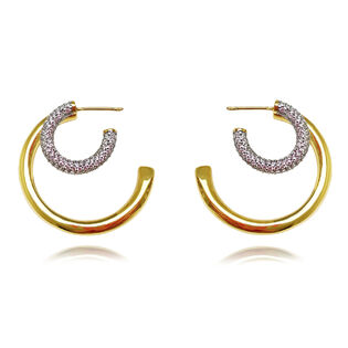 A keepsake piece of jewellery ignites love, passion, unforgettable memories and possibilities. Introducing Massimo Diamante Dual Tone Hoop Earrings - a contemporary and avant-garde style earring craft for style makers. This design features twin-loop earrings consist of gold open C hoops and diamante-embellished smaller C hoops. The earrings are made in solid environmentally friendly brass with 18K gold plating, evenly plated and smoothly polished to premium jewellery standards. A unique and lifelong keepsake for those who appreciate fine style and high quality. Hypoallergenic, nickel, lead, and cadmium free.