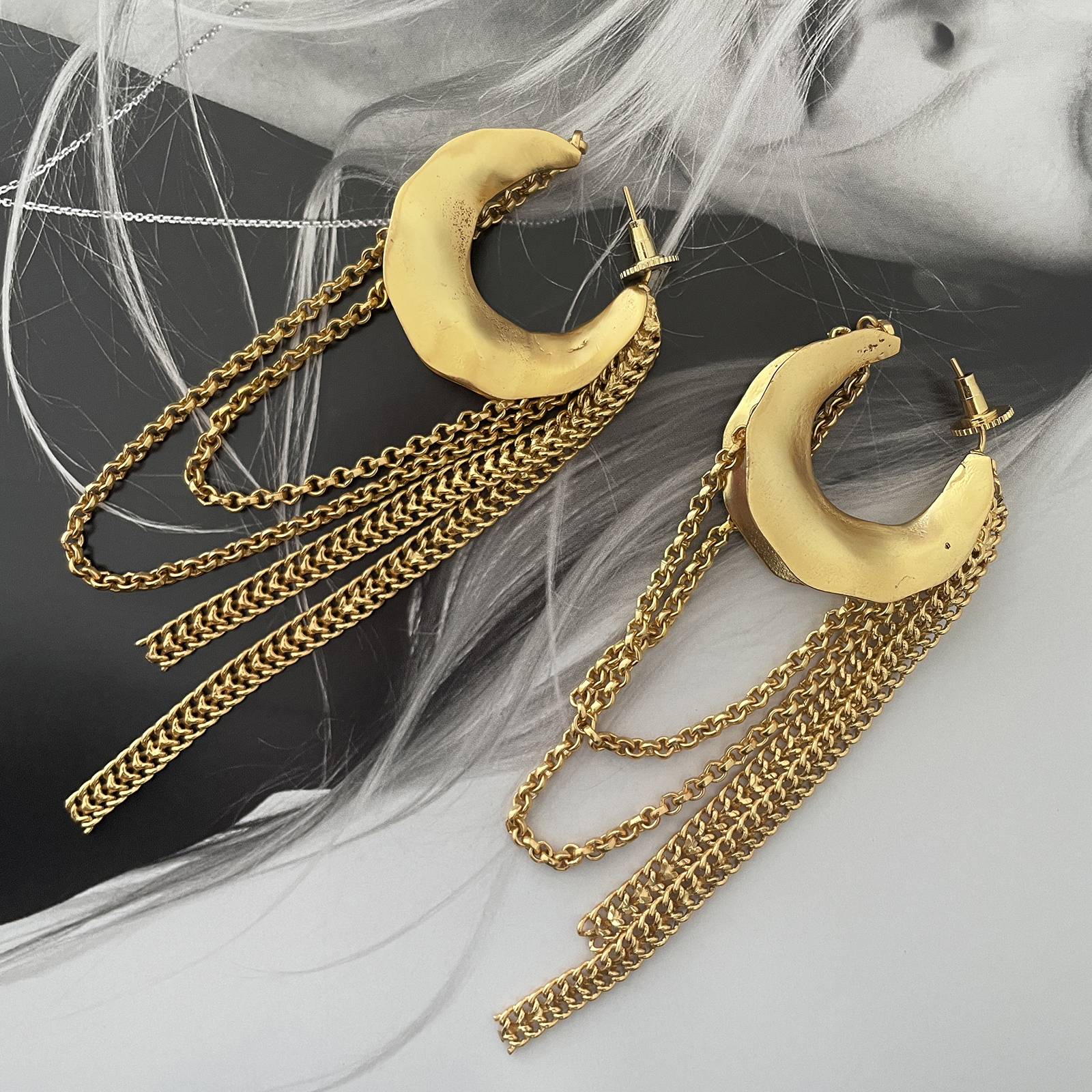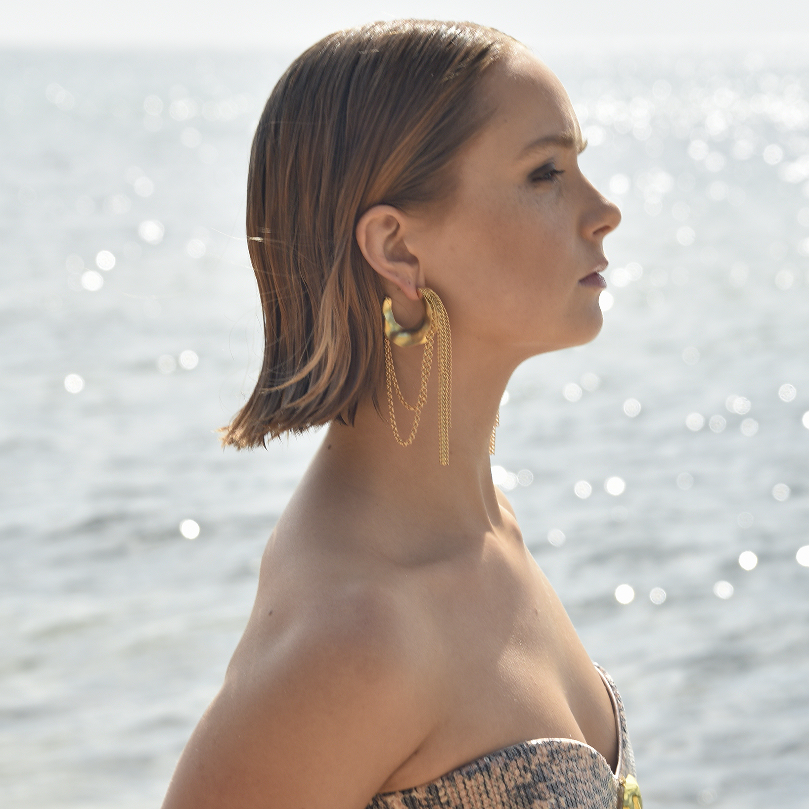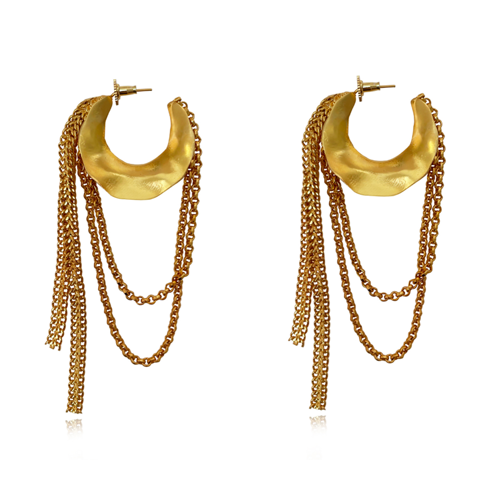 Seek authenticity not perfection. Introducing McKenna 24K Bowl Chain Earrings - an artisan handcrafted statement piece spanning several eras of fashion. The design idea germinated from head-carrying (bowl) traditions in Africa and dangling looping chains signify a sense of strength and modernism. The earrings are crafted in environmentally friendly brass with 2 microns of thick 24K pure gold plating for an enriched and luxury gold shine. Perfect for statement lovers who appreciate cultural diversity and want to embrace cultural stories through art and craft-making.