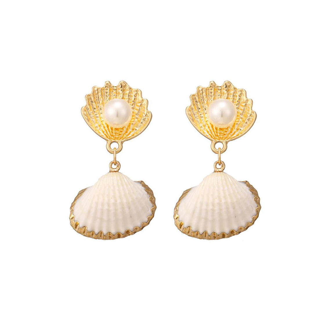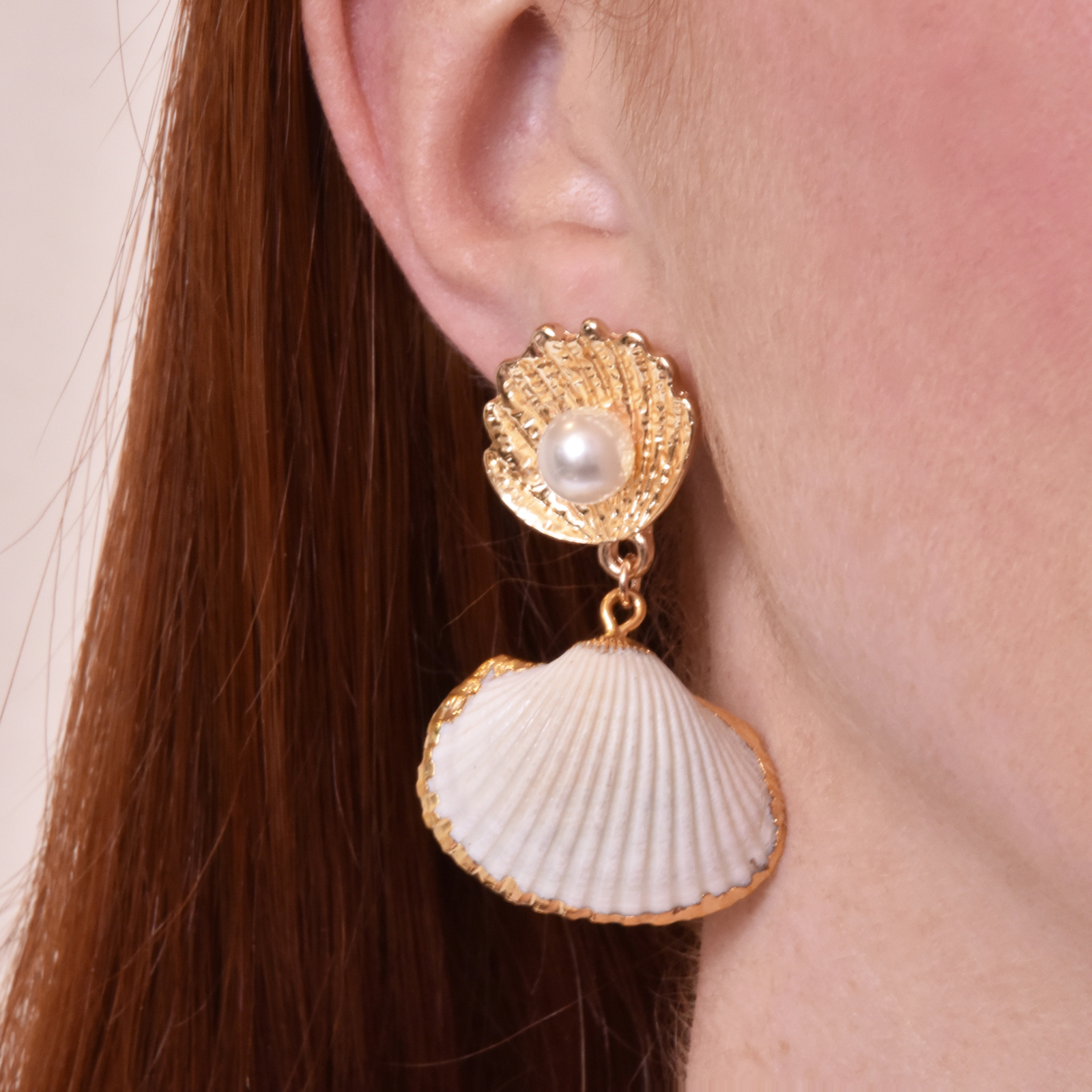 Are you a coastal beige / light tone lover? introducing Mercy Shell Drop Earrings - a chic and coastal style for simplicity-seeking modern muses. This design features gold clams and angled natural shells with gold colour plated edges. Perfect for summer styling, beach styling, costal styling, casual, girly and dressy styles. Available for both pierced and non-pierced ears.