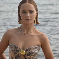 This necklace is 47cm long. Please kindly note that the position of the necklace sitting on your neck can vary from individual to individual depending on your top size. Model is a size 8.