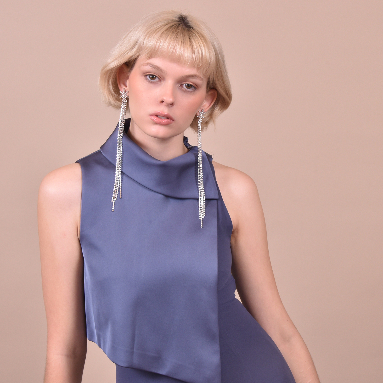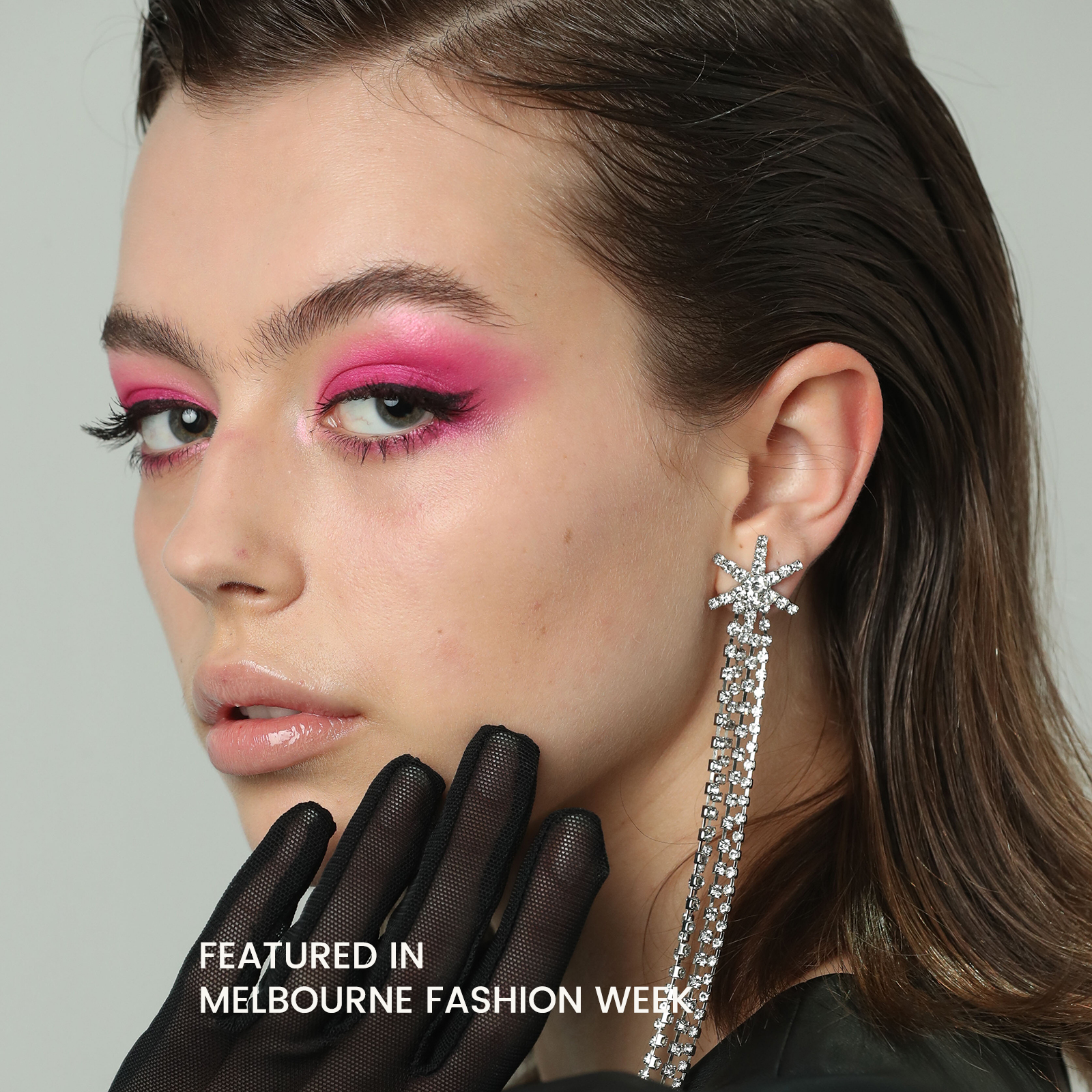Extravagantly elegant and unforgettable at Culturesse. Introducing Miranda Crystal Diamante Earrings — a ‘Vogue style ready’ earring style that exhibits your uncompromising high fashion attitude. This outspoken design is crafted in environmentally friendly stainless steel (nickel free) with silver plating. The header of the earrings is designed in a snowflake shape embellished with 4 long strings of crystal diamantes, creating a stunning shimmer down your neck. A unique and life-keeping ear treat for any dressy and glamorous occasions. Available for both pierced and non-pierced ears. This design makes it a great fit for non-pierced ears as the metal clip of the earring converter will be hidden behind the earring header almost unseen.