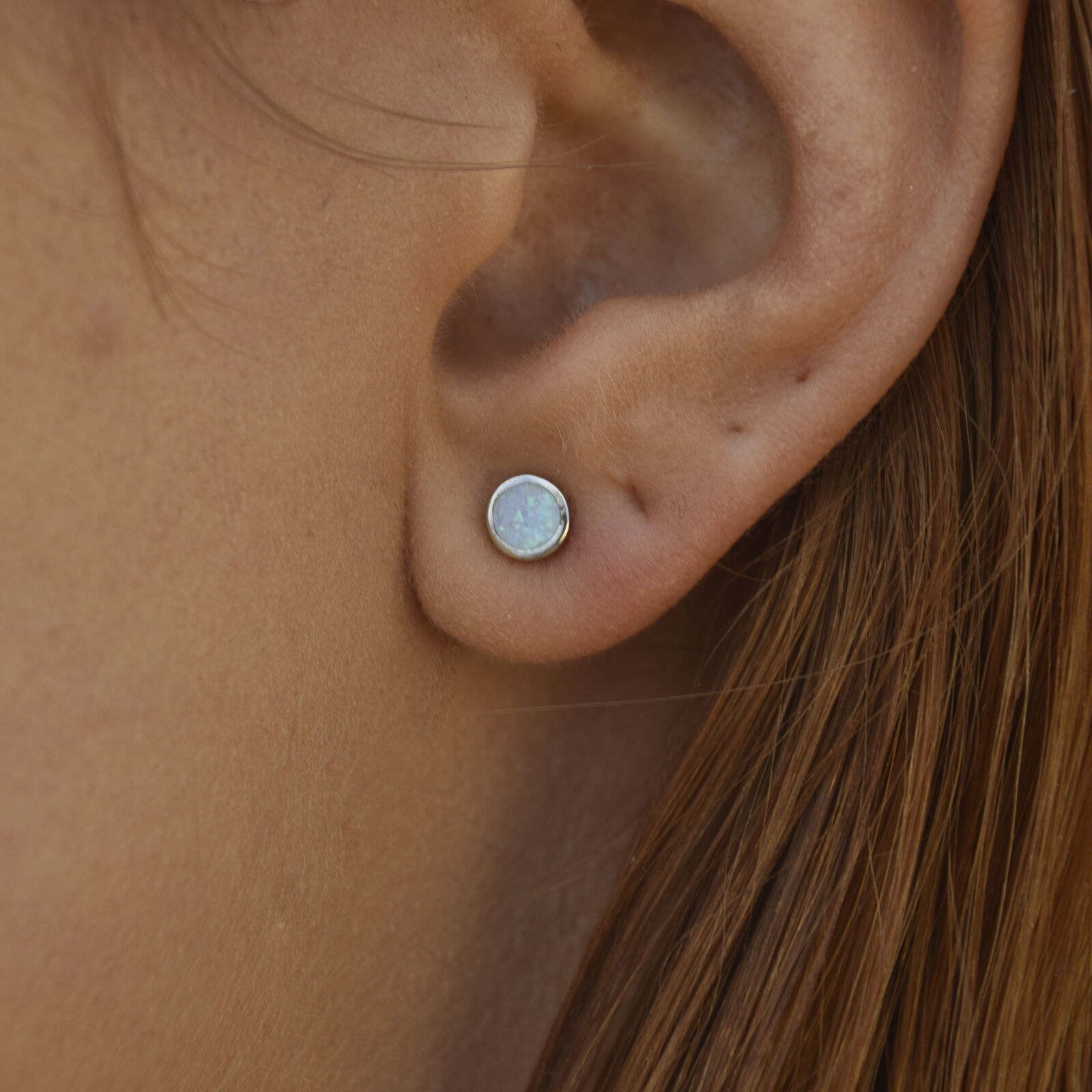 Aeliana Dainty Opal Stud Earrings (Silver)