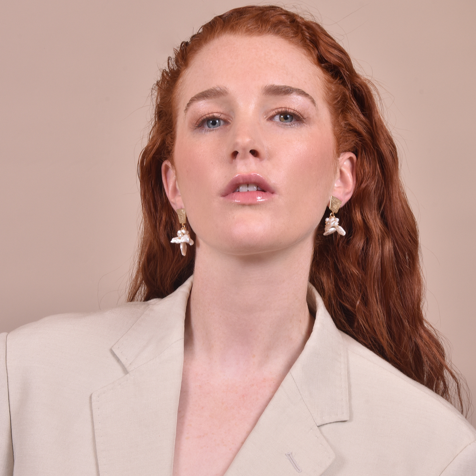 Inspired by coastal culture and beauty of pearls, introducing Mirele Artisan Pearl Drop Earrings - a handcrafted 'pearl stack' beauty for an elevated look. This design is carved in solid sterling silver with quality 18K gold plating, making the earrings hypoallergenic and tarnish resistant. The pearls featured in this design are natural freshwater pearls in assorted shapes for a more aesthetic visual result. Perfect for beach, coastal, summer, feminine, dressy, formal, semi-formal occasions and more. 100% nickel, cadmium and lead free.