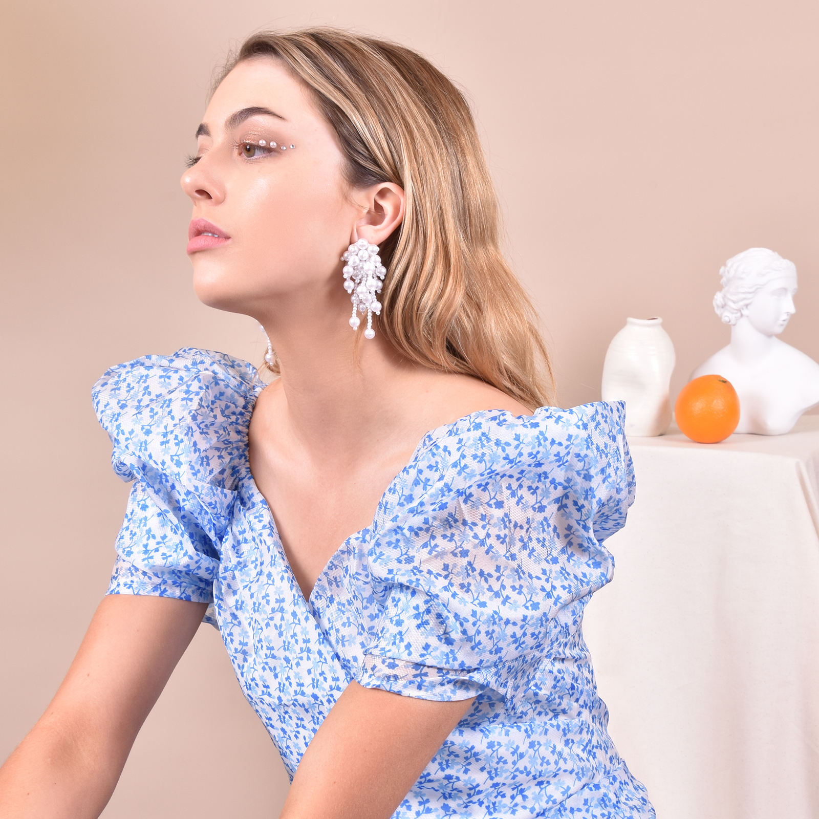 Love a 'full-blossom' pearly shine with a royal vibe? introducing Mireya Tender Heart Earrings - an elegant and vintage-ish pearly earring style to finish the look. Regardless styling with dresses, evening wear, formal wear, or a simply plain blazer, rock a high fashion pearly drop all year around. Sterling silver earring posts. Available for both pierced and non-pierced ears.