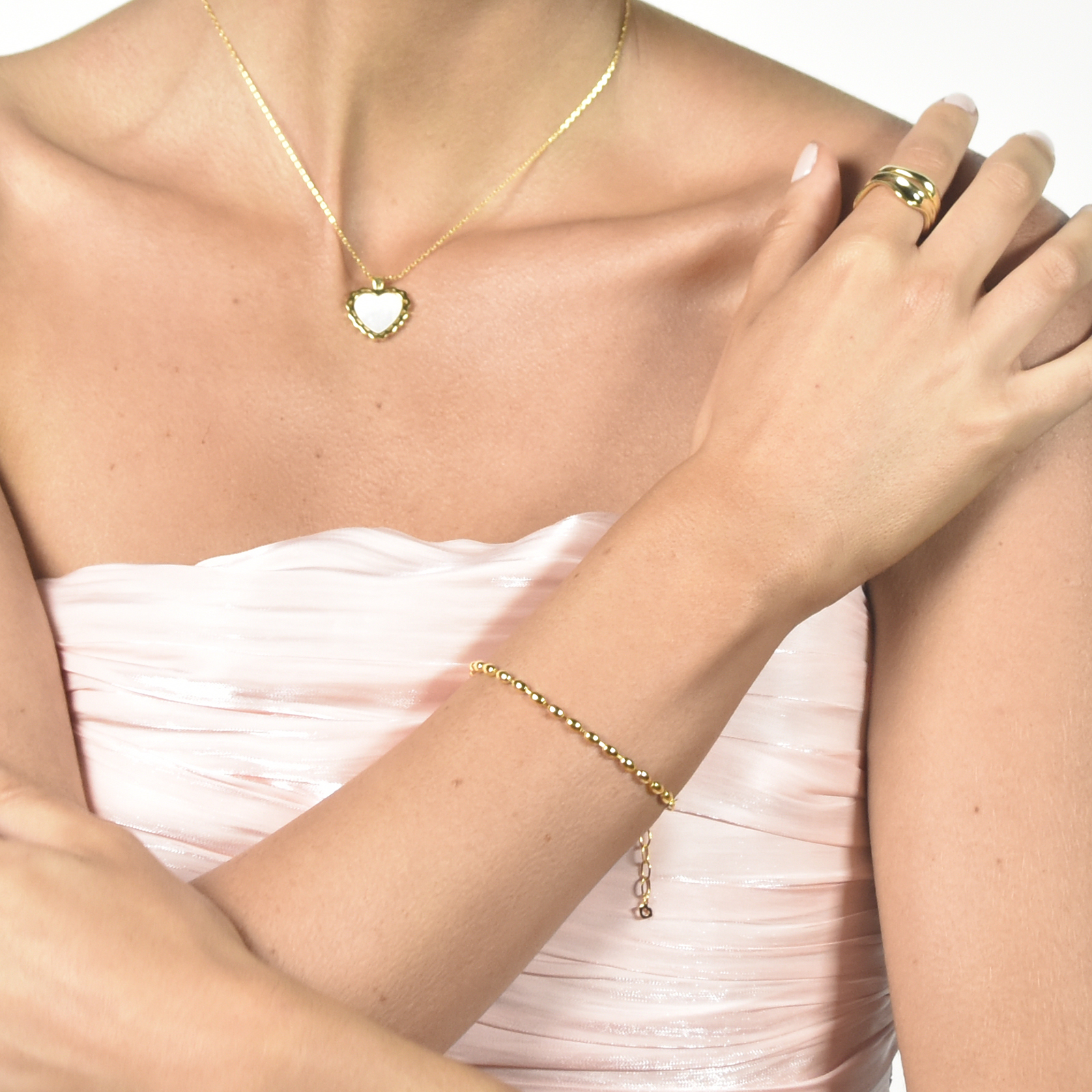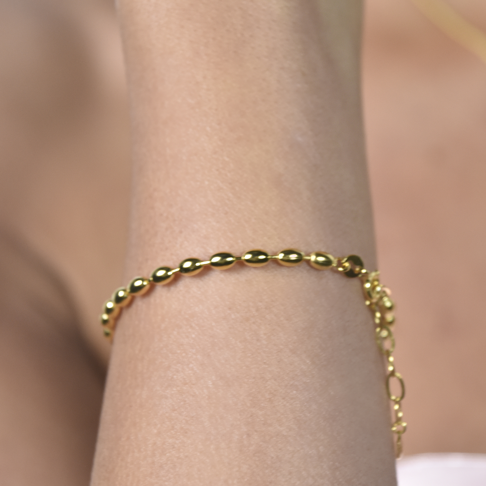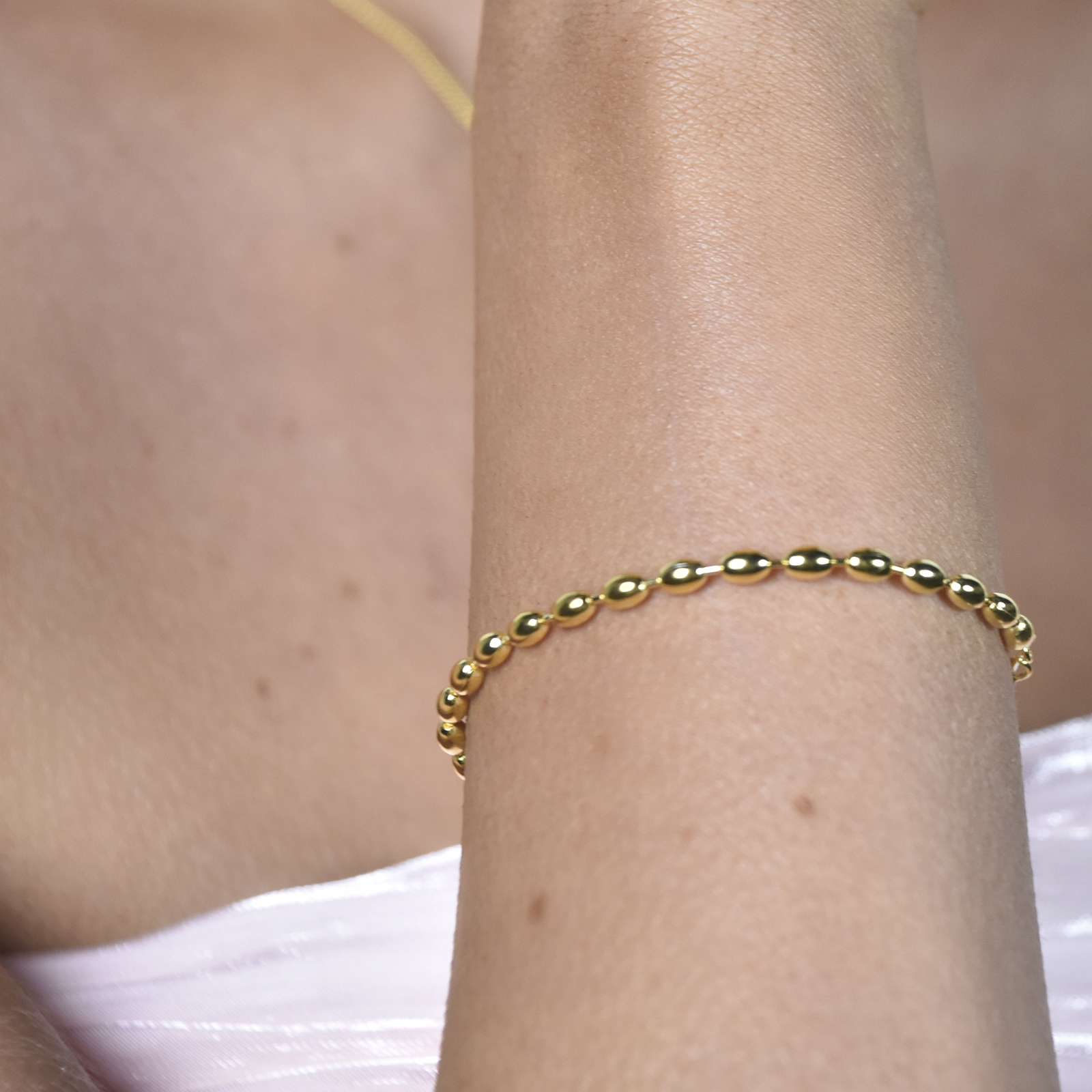 Modern simplicity in a chic, classy and feminine way. Introducing Modern Muse Beaded Bracelet (Gold Vermeil) - a contemporary style wrist love for a timeless and elevated look. This design features highly polished gold beads in a simple thread. This bracelet is made of solid sterling silver with 2.5 microns of high quality 18K gold plating (Gold Vermeil to Premium Jewellery Standard). It is 18cm long including a 3cm adjustable link for a more flexible fitting. Perfect for wearing on its own or layering with other bracelets. Suitable for all personal styles. Hypoallergenic, nickel, cadmium and lead free.