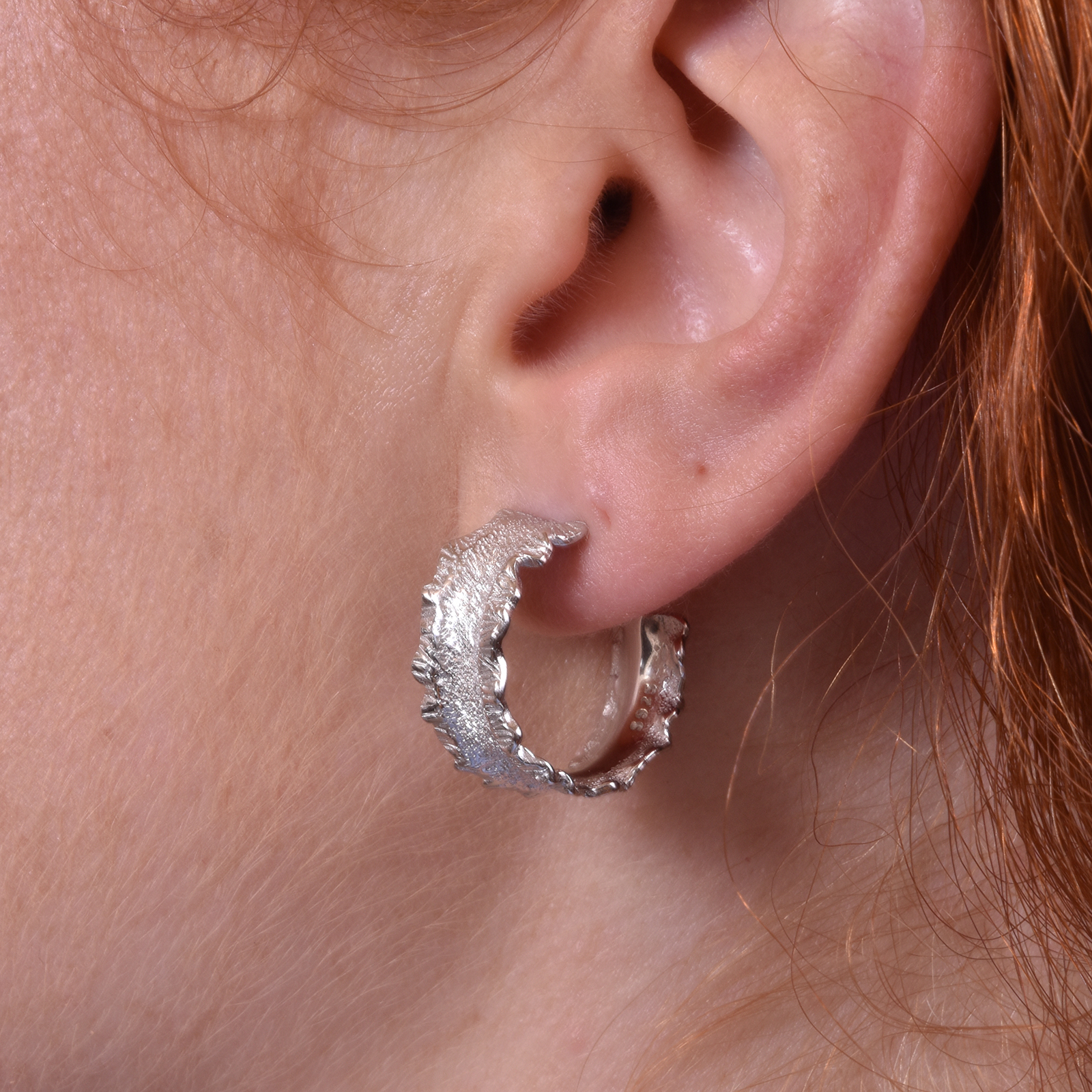 Bring silver hoops to another level, introducing Monte Textured Silver Hoop Earrings - solid sterling silver hoops with artsy textures and styles. Crafted in solid sterling silver with rhodium plating, this raw, contemporary and texture-rich deign makes it a timeless styling choice for women of all ages. Quality silver also makes a 'can't-go-wrong' choice for all occasions. Perfect for modern, chic, minimalist, artsy, smart casual, dressy, semi-formal and formal occasions. 100% nickel, cadmium and lead free