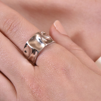 Modern artisan ring craft inspired by contemporary art. Introducing Morgan Artisan Silver Open Ring — a simple, solid, and artsy ring design belonging to the new age. This ring is crafted in solid sterling silver (nickel free) with a raw hammered finish, transforming light and shade into a playful dance. It is also plated with rhodium (most precious plating). This piece fully resizable and adjustable manually (due to the softness of sterling silver) so you can adjust for the most perfect fit. Perfect for modern, chic, punk, bold, minimalist, high fashion, everyday styles and more. Hypoallergenic, nickel, cadmium and lead free.