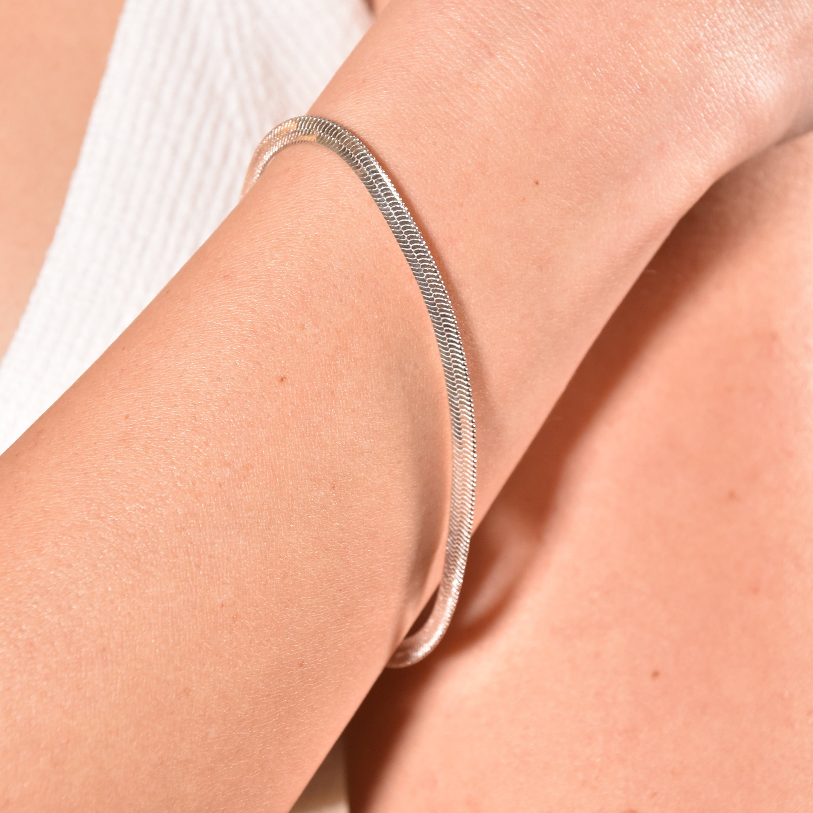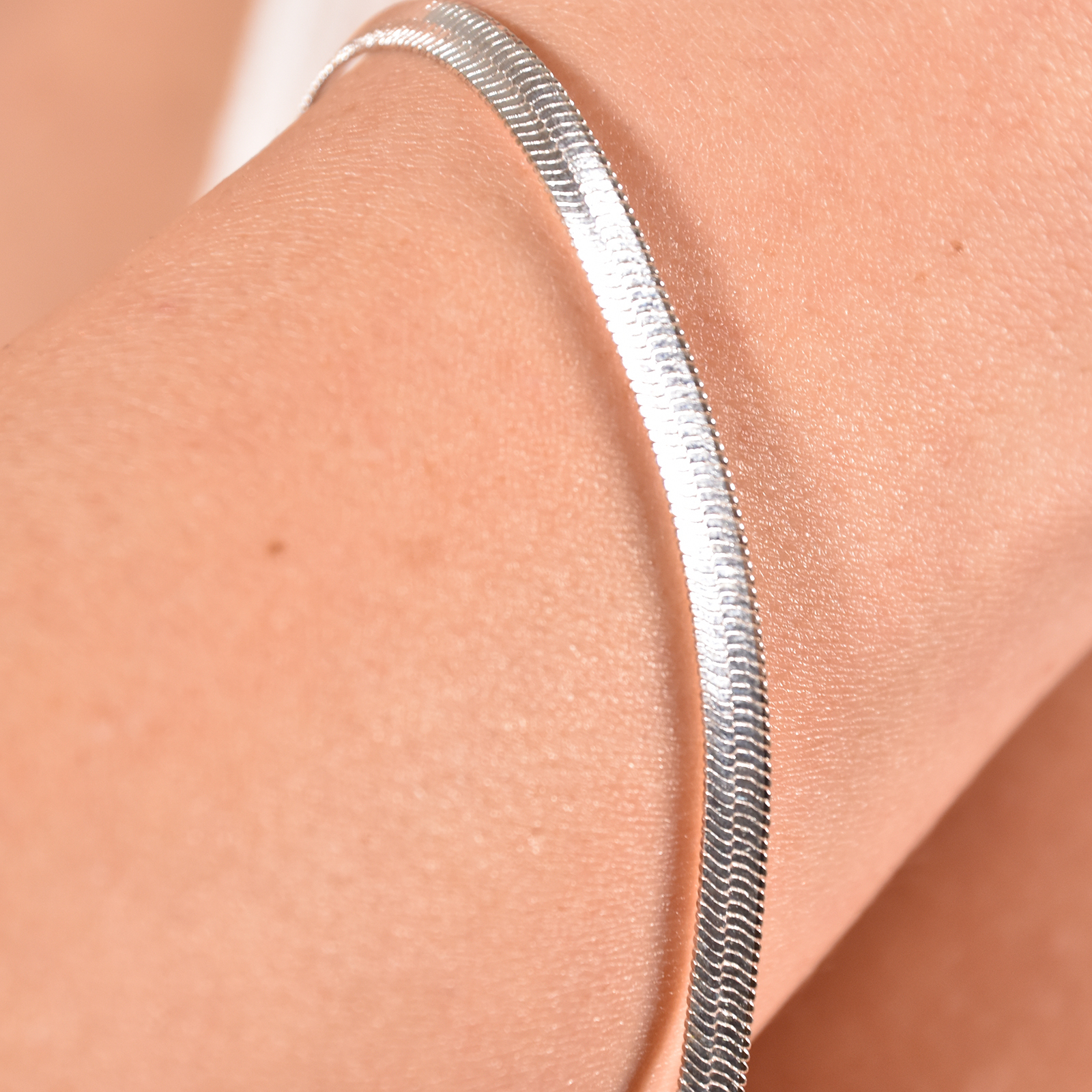 Modern, simple and versatile. Introducing Morgan Snake Chain Bracelet / Anklet - a classic snake chain style bracelet to add a sleekness to your styling. This piece features a standard length (20cm) snake chain that also comes with a 5.5cm adjustable link, making the total length 25.5cm. This bracelet is made of solid sterling silver for hypoallergenic wear and durability. It can also be worn as an anklet. Perfect for modern, simple, minimalist, casual, everyday style and more. Hypoallergenic, nickel, cadmium and lead free.