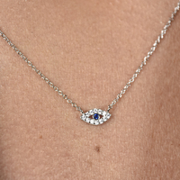 Fine everyday style with a spiritual touch. Introducing Mridu Fine Evil Eye Pendant Necklace (Silver) - a delicate and refined neckpiece for lovers of fine styles. This design features an evil eye pendant embellished with blue and clear Austrian cubic zirconias. This neckpiece is crafted in solid sterling silver with rhodium plating to ensure hypoallergenic wear, durability and an extra anti-tarnish protection. This necklace is 50cm long including 10cm adjustable link with 2 loops at 5cm apart, which allows to wear this neckpiece at 50cm, 45cm, and 40cm. Suitable for women and girls of all ages. Perfect for modern, boho, chic, girly, minimalist, necklace layering, smart casual, casual, everyday styles and more. Hypoallergenic, nickel, cadmium and lead free.