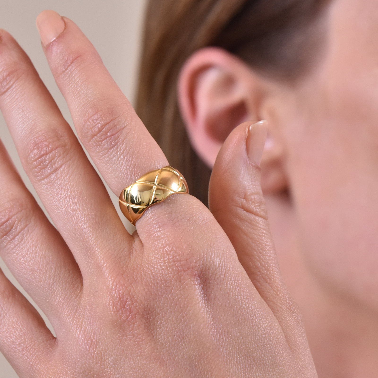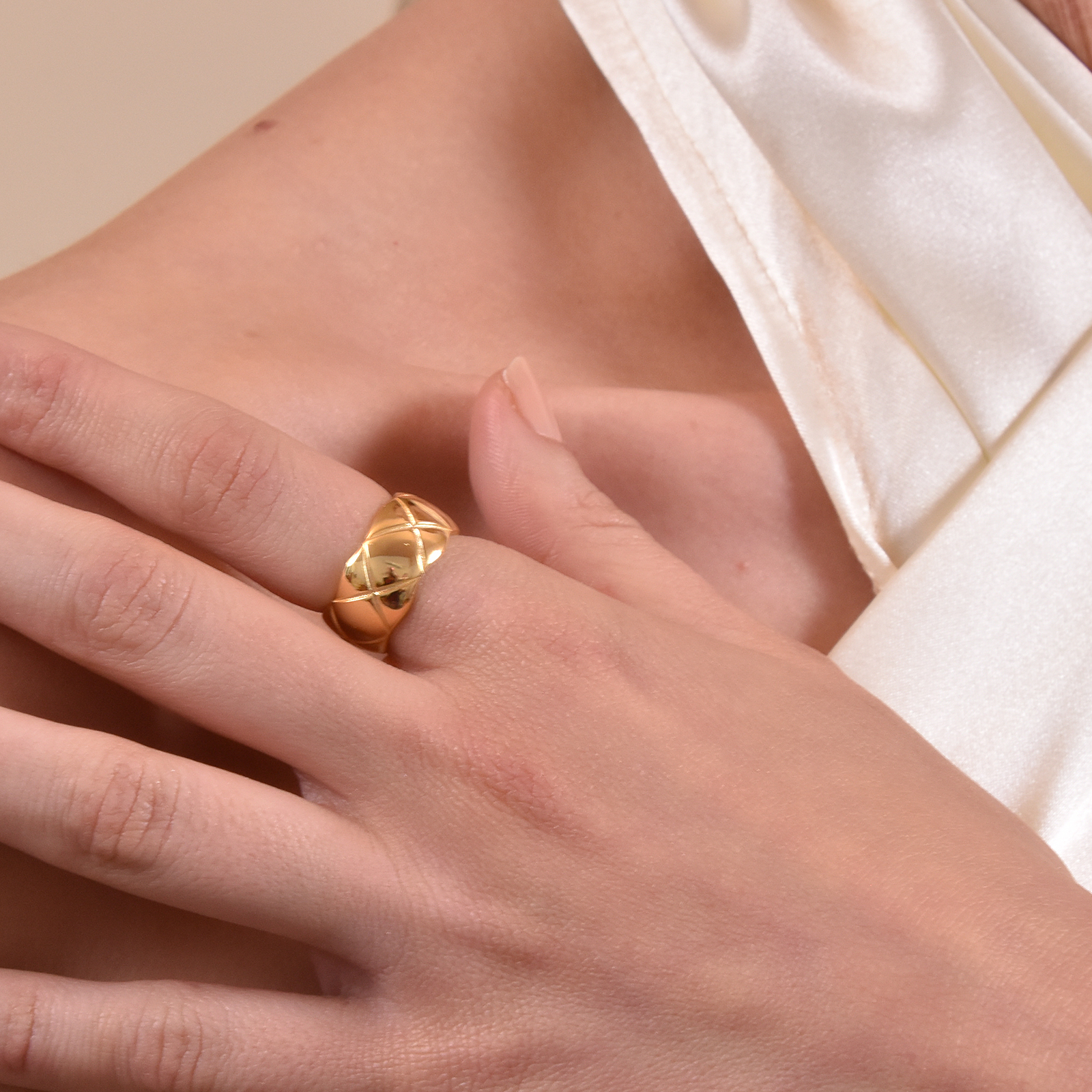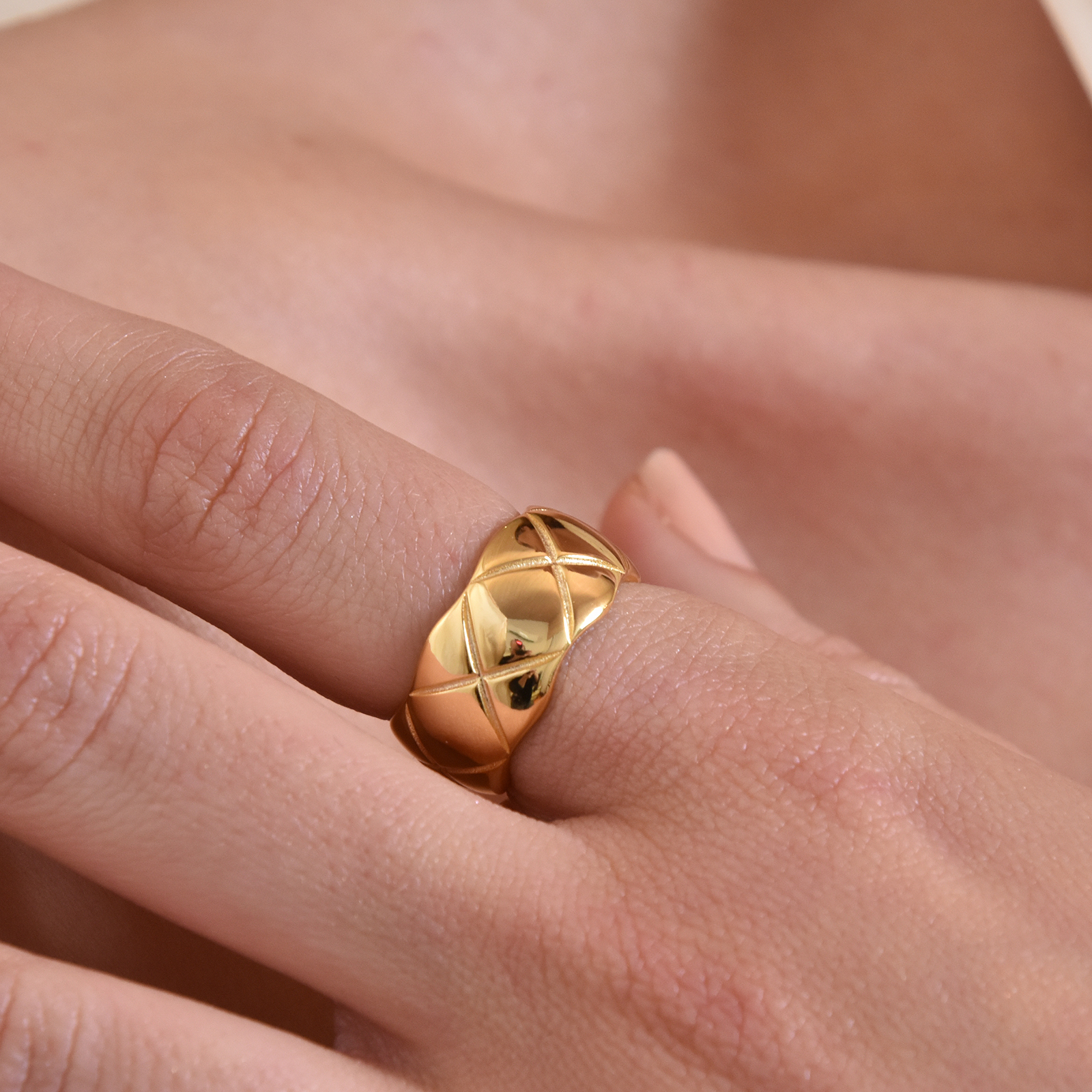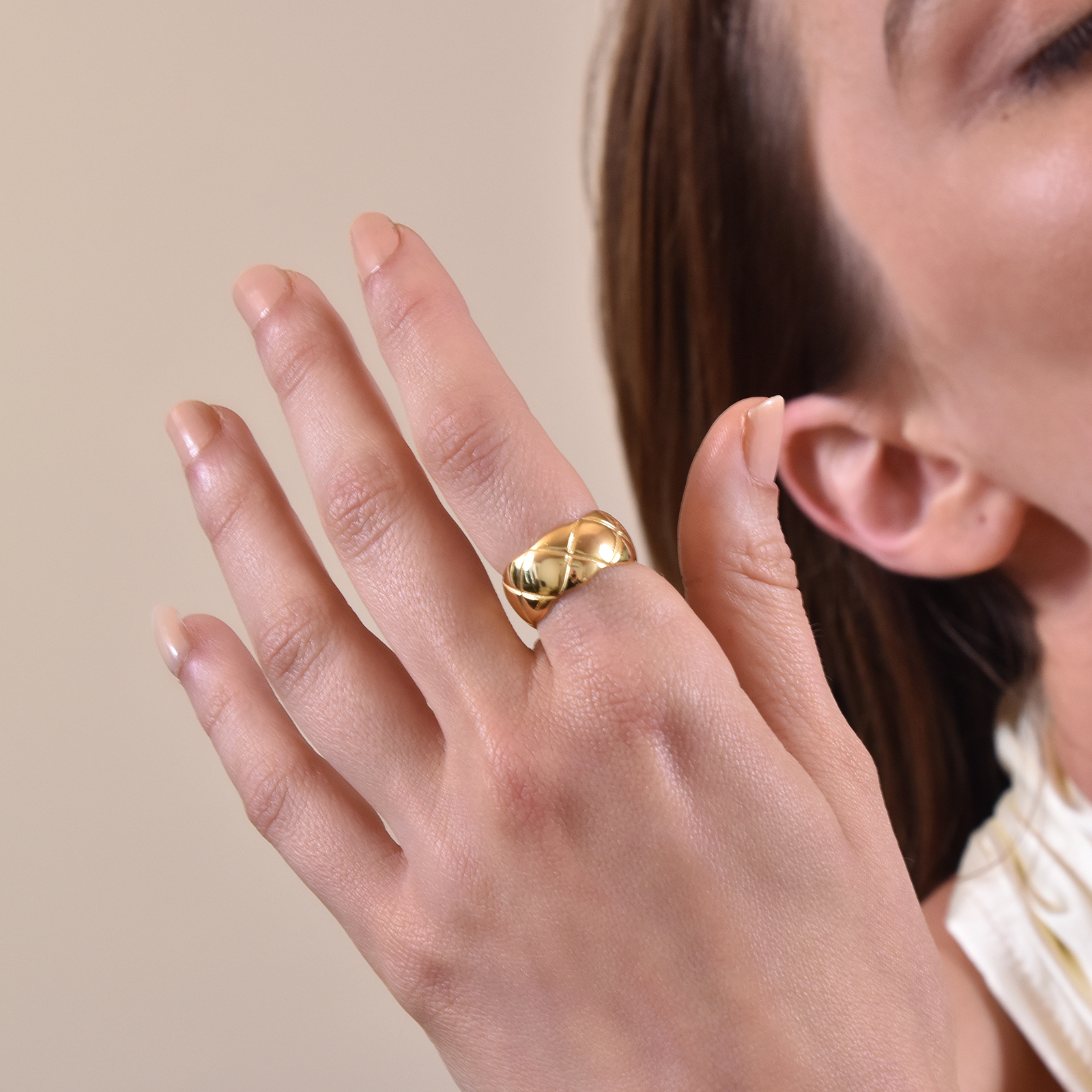 Looking for contemporary artsy rings? introducing Muccia Artisan Gold Vermeil Open Ring - a handcrafted retro-inspired modern design that is simply, timeless, luxurious and creative. This design is handcrafted in solid sterling silver with a high quality 2.5 Micron 18K yellow gold plate, giving the ring a smooth and luxurious yellow gold shine that is ensuring and tarnish resistant. What makes it sweeter is that it is open and fully resizable to suit different sizes of fingers. Perfect for modern, retro, chic, smart casual, punk, classy, minimalist, Parisian, trendy and luxurious styles. 100% nickel, cadmium and lead free