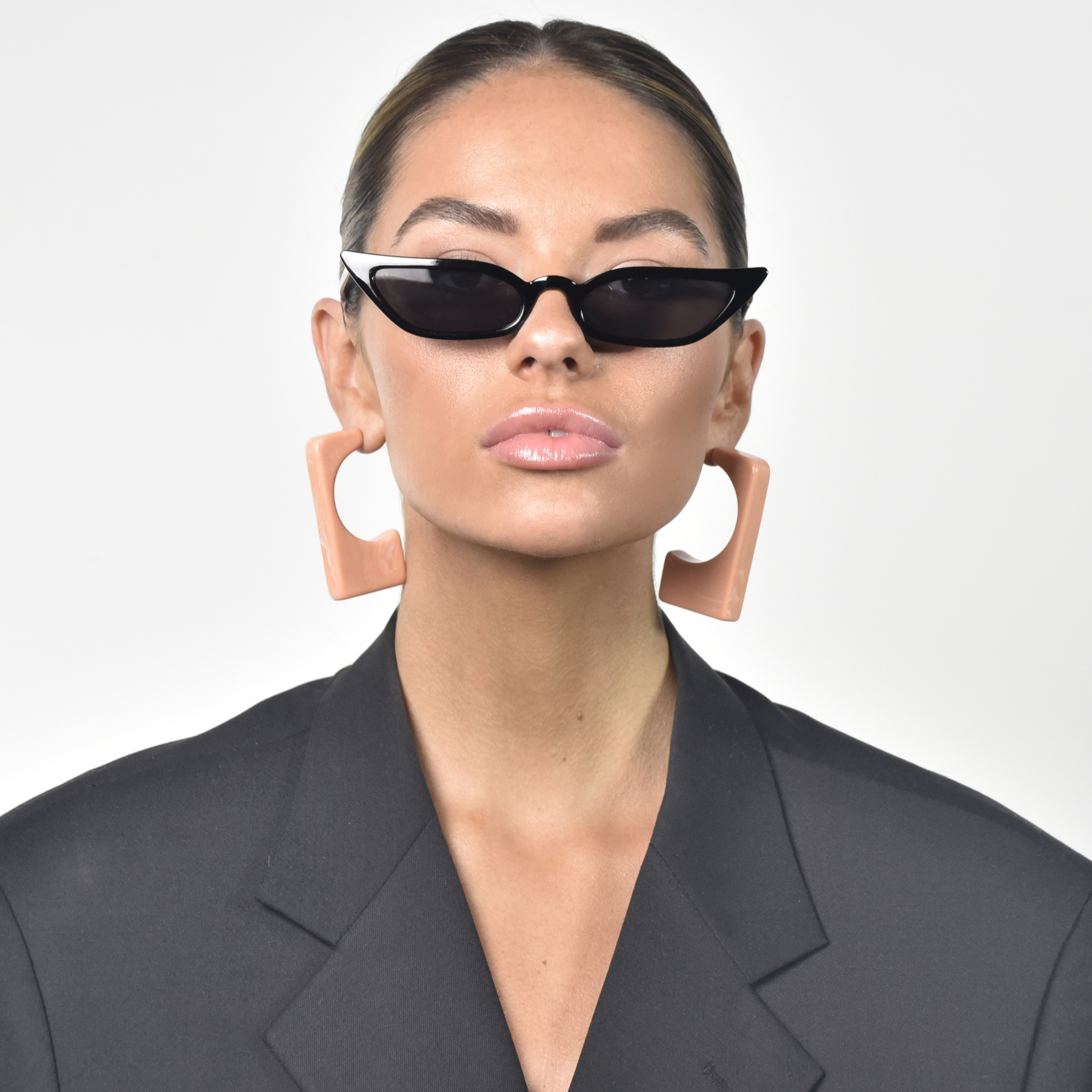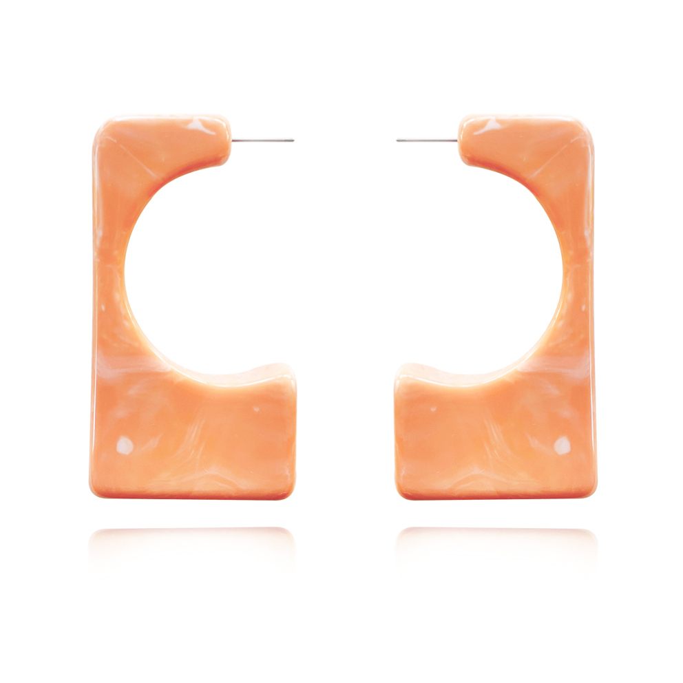 Modern extravagant statement with a daring attitude. Introducing Nadia Geo Oversized Resin Statement Earrings - a contemporary style artsy ear love for your uncompromising fashion styling. Inspired by modern geometry and abstract art, this design features a chunky block design with a warm peach colour - succinct with pop. The earrings are made in resin with a smooth polish, and comes with surgical steel earring posts. Perfect for statement lovers and uniqueness seekers.