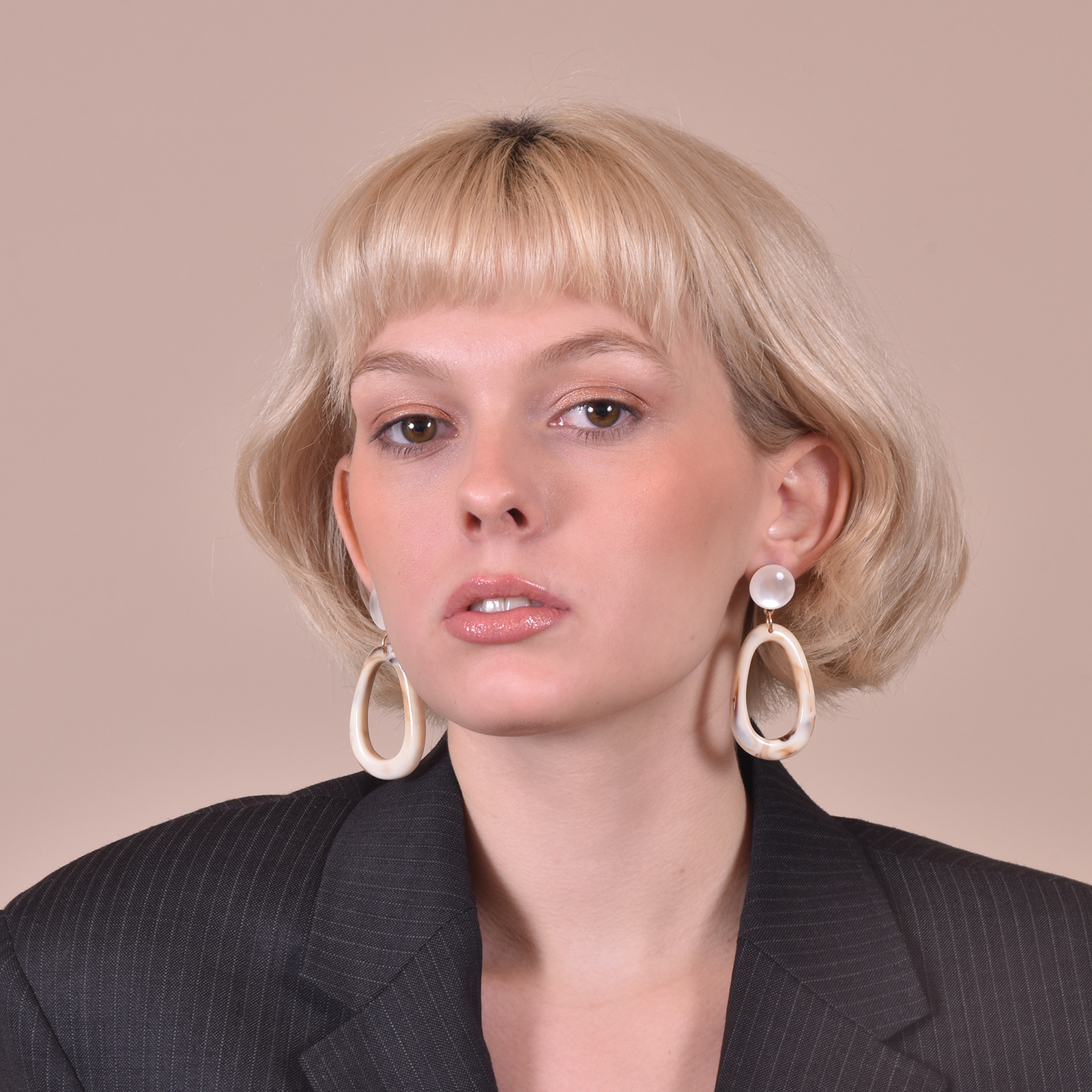 Simple, modern and minimalistic, this pair of Naeva Marble Loop Earrings embraces your creativity and unique presence in a quiet and gentle fashion. The soft and neutral shade goes perfectly with both dark or light shades garments. This design is available for both pieced and non-pieced ears.