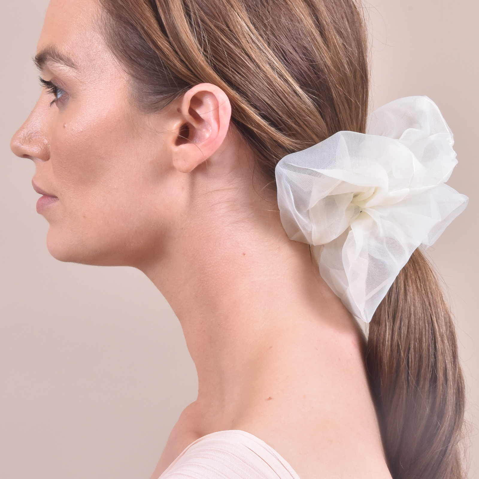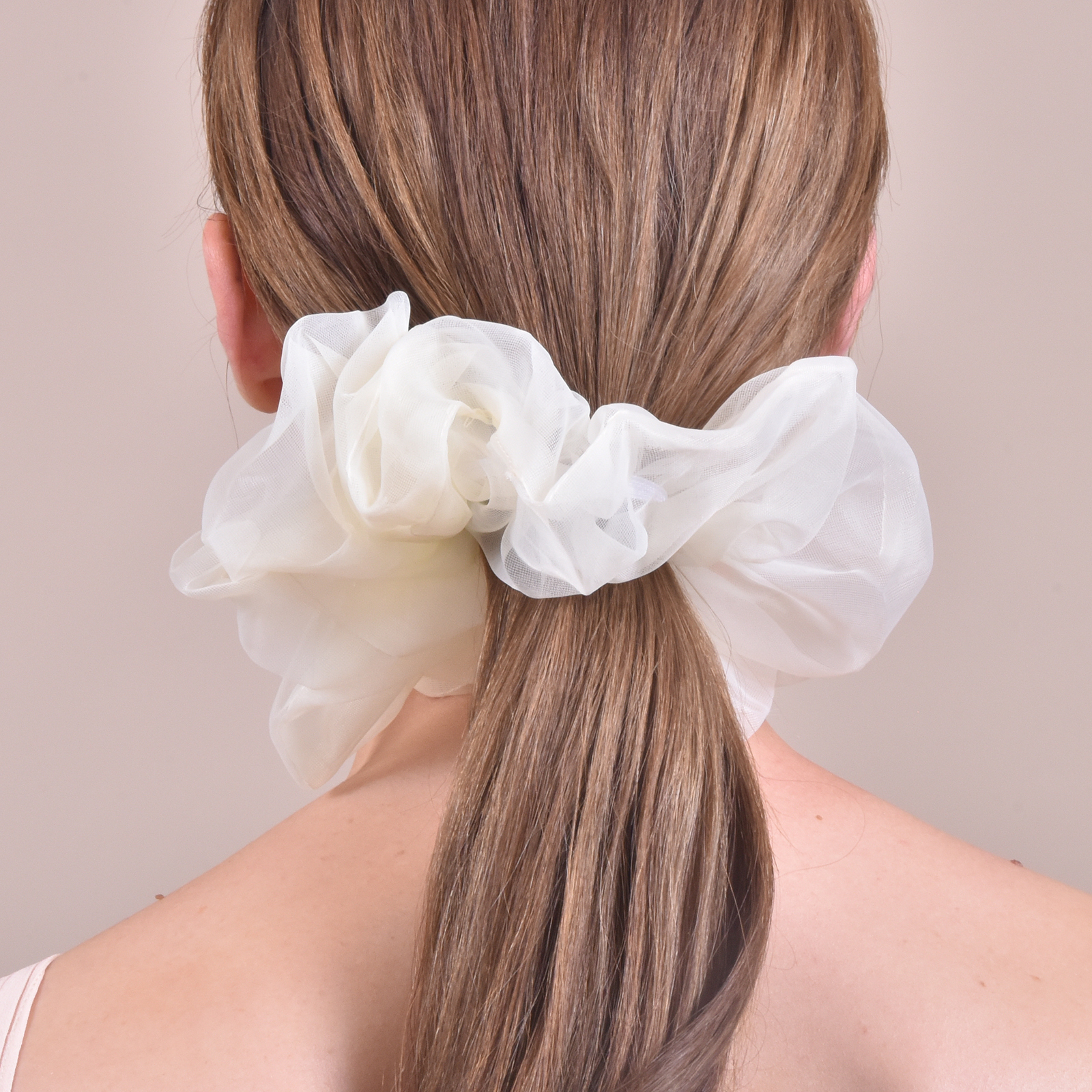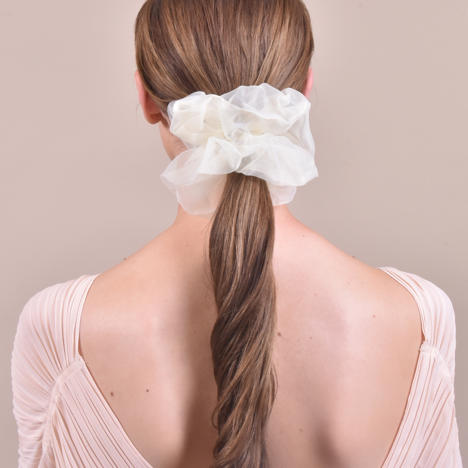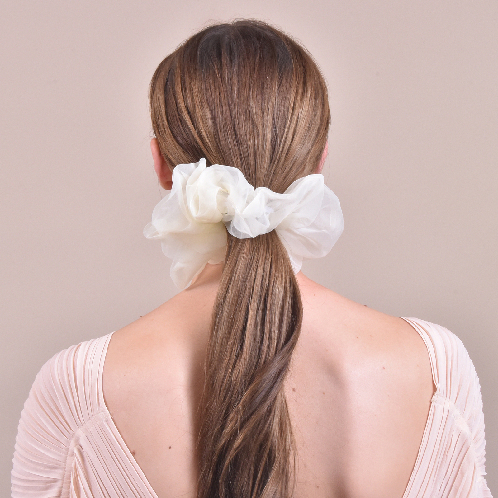Dreamy and fiercely feminine. Introducing Naya Oversized Scrunchie— an adorable and romantic hair delight that melts hearts. Depending on the thickness of your hair, you can tie the scrunchie around your hair in a single or double loop to ensure the best hold of your hair. You can also slightly manipulate the shape of the scrunchie for a puffy and ‘blooming’ effect. Perfect for chic, feminie, girly, vintage, romantic, summer, coastal, Parisian, bridal, casual styles and more.