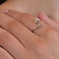 Modern inspirations come in waves - introducing Nola Artisan Silver Open Ring - an ethically handcrafted contemporary style for simplicity-seeking modern muses. This ring is crafted in solid sterling silver with artsy 'ebbs and flows', adding a creative and fine movement to your fingers. It is also fully adjustable, so that you can try on all fingers. Whether worn on its own, or together with other rings, it is fully open to your creativity calls. Perfect for modern, simple, minimalist, casual, sleek and everyday styles. 100% nickel, cadmium and lead free