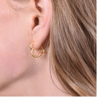 Chic, romantic and unique in a subtle way. Introducing Enora Deco Heart Earrings (Gold) - a French style love huggie for muses who love something different. Elevated from traditional love heart earrings, this design features love hearts that face towards the front. The earrings are made of solid sterling silver with 2.5 microns of 18K gold plating (heavy gold plated) to ensure durability and hypoallergenic wear. There is also a solid feel of weight to the earrings. Perfect for modern, retro, dainty, chic, feminine, girly, earring layering, minimalist, smart casual, casual, everyday styles and more. Also suitable for teens and kids. Hypoallergenic, nickel, cadmium and lead free.