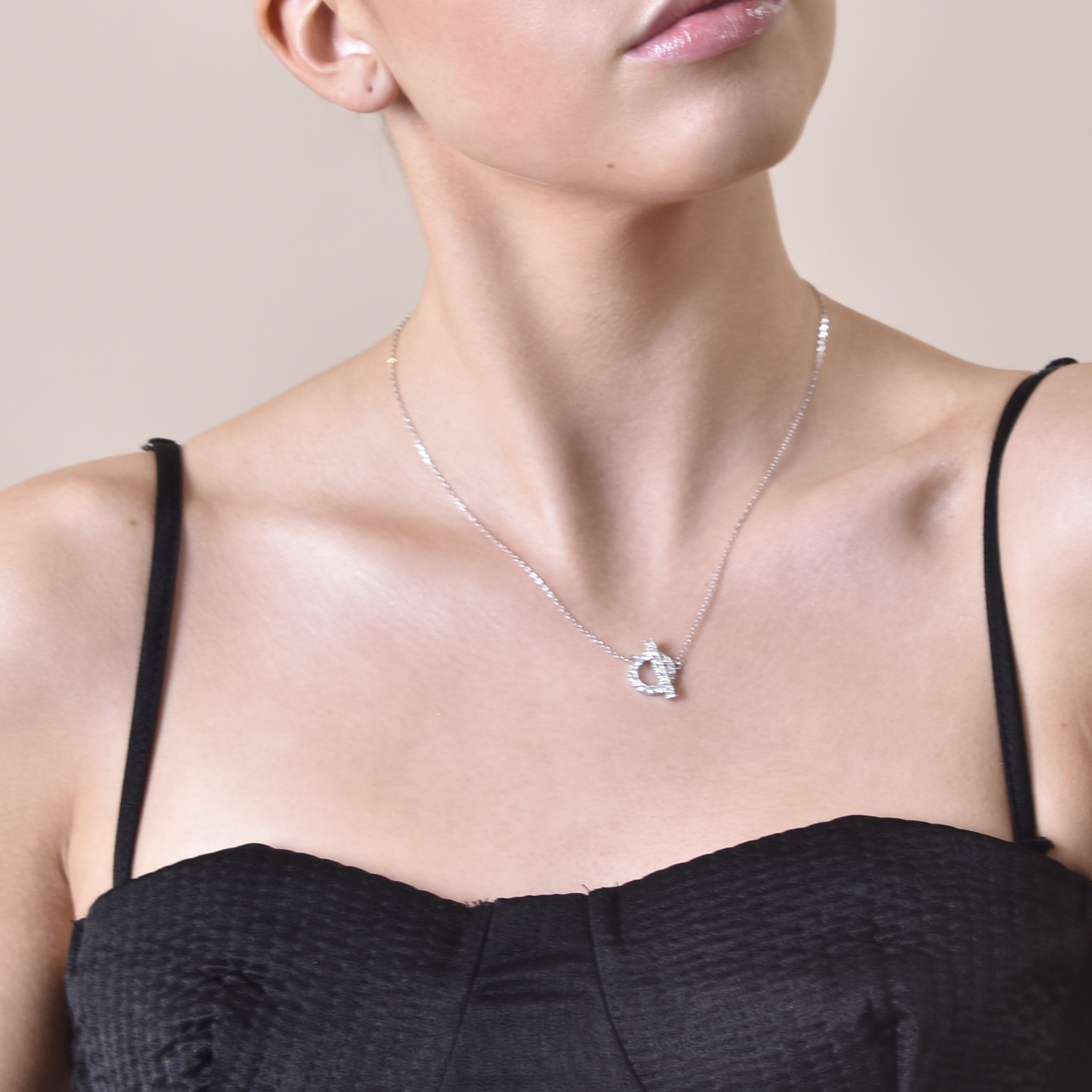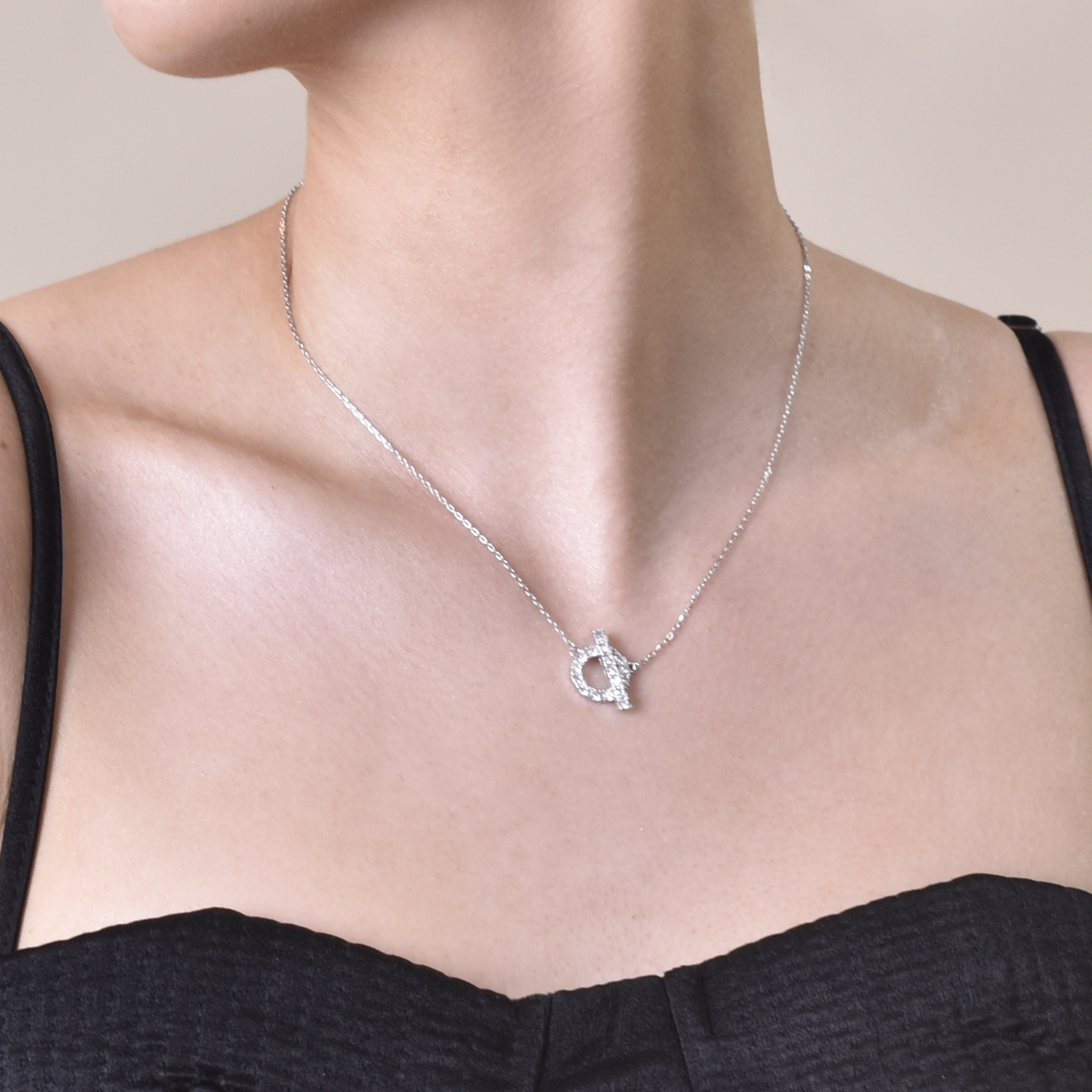 Unleash your inner sparkle. Introducing Oaklyn Diamante Buckle Pendant Necklace (Silver) - a feminine and chic neck love to add a delicate shimmer to your styling. This design features an on-trend OT buckle pendant (fixed) adorned with stunning Austrian zirconias. This neckpiece is made of solid sterling silver for hypoallergenic and durable wear. It also comes with a 5.5cm adjustable link for more flexible fitting - allowing you to create both hanging and choker styles. Suitable for women and girls of all ages. Hypoallergenic, nickel, cadmium and lead free.