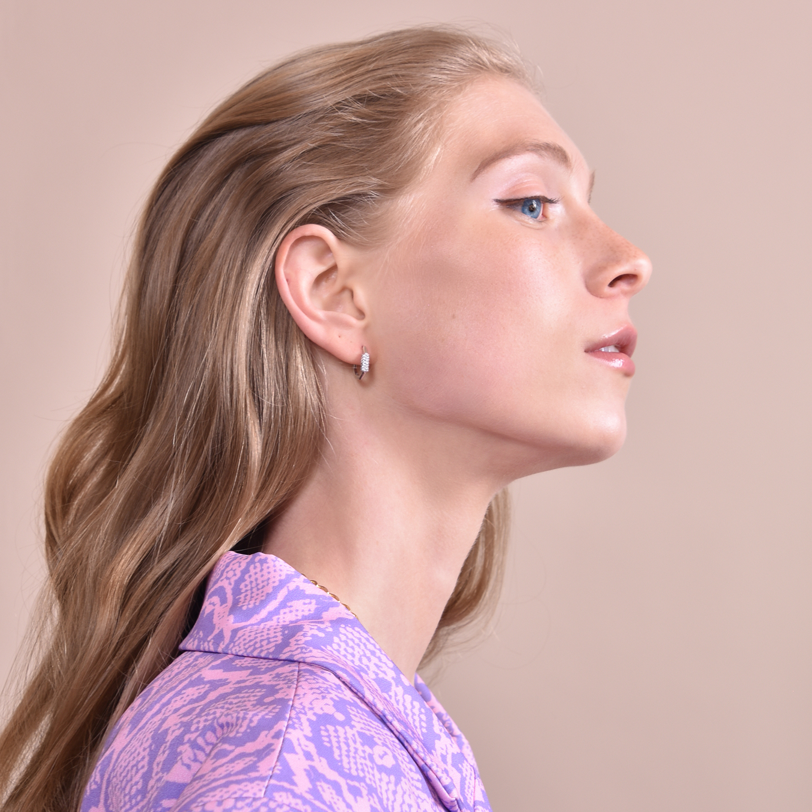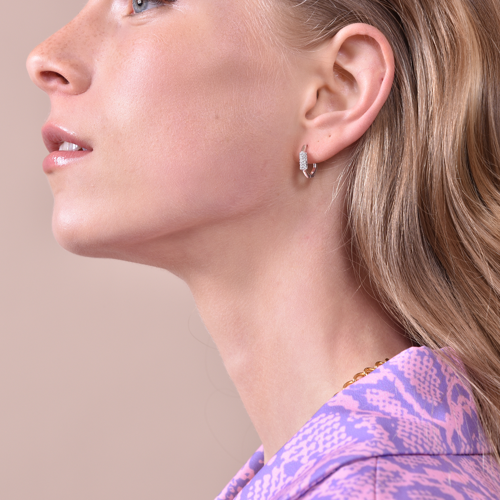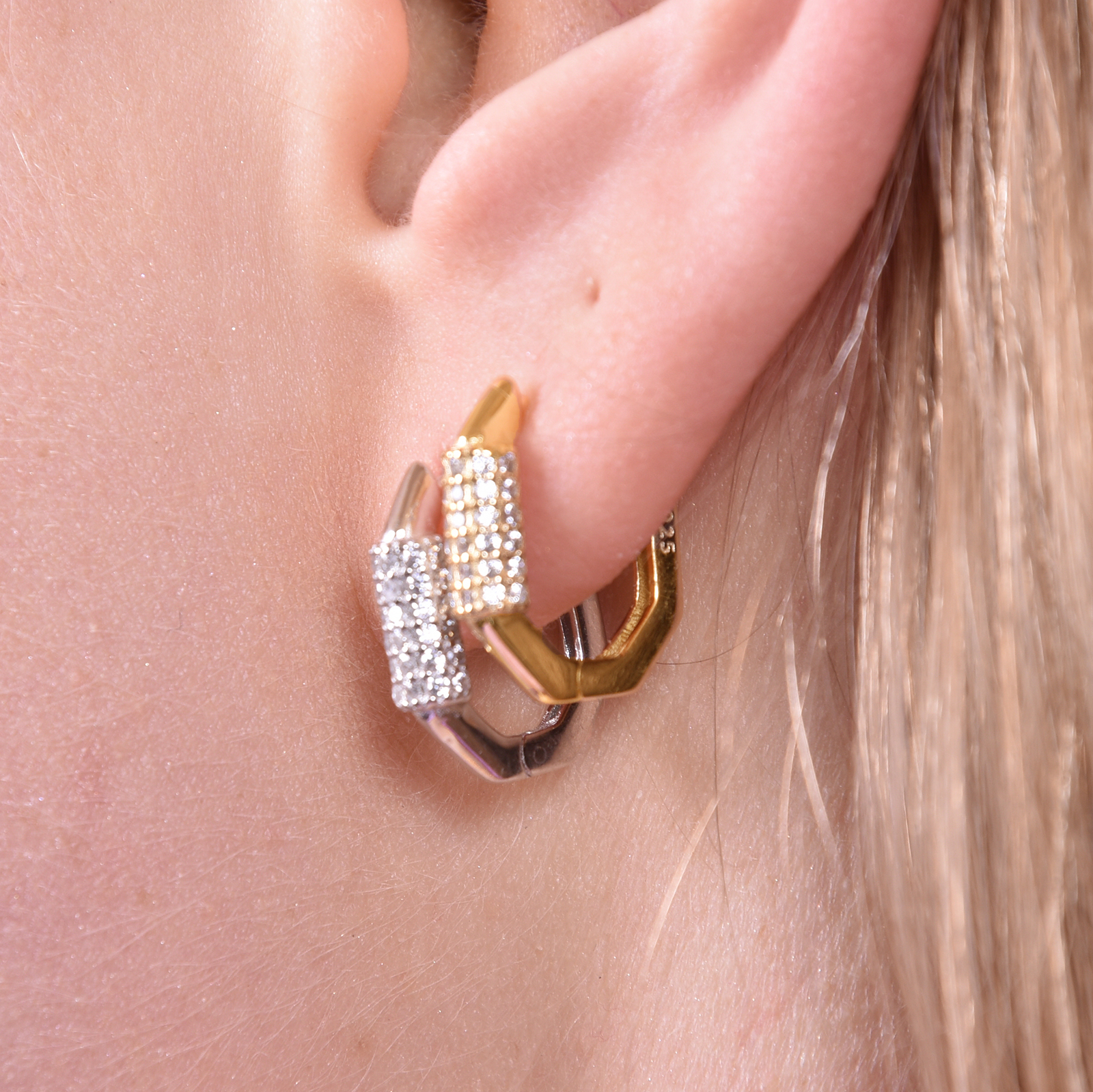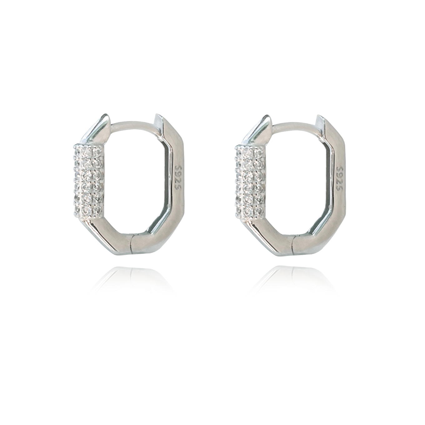 Dainty yet uncompromising. Introducing Octavia CZ Inlaid Dainty Huggie Earrings (Silver) - a stylish and edgy modern ethical ear love for those who prefer something different. This design features two octagon shaped gold huggies with the front sides embellished in Austrian cubic zirconias. The earrings are made of solid sterling silver to ensure durability and hypoallergenic wear. A statement that is not defined by size. Perfect for modern, artsy, punk, minimalist, earring multi layering, smart casual, casual and everyday styles. Suitable for women and girls of all ages. Also suitable for unisex wear. Hypoallergenic, nickel, cadmium and lead free.