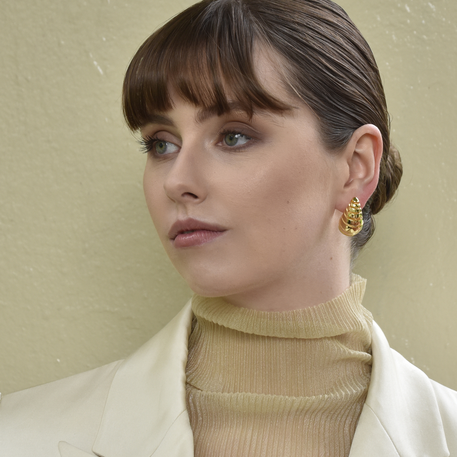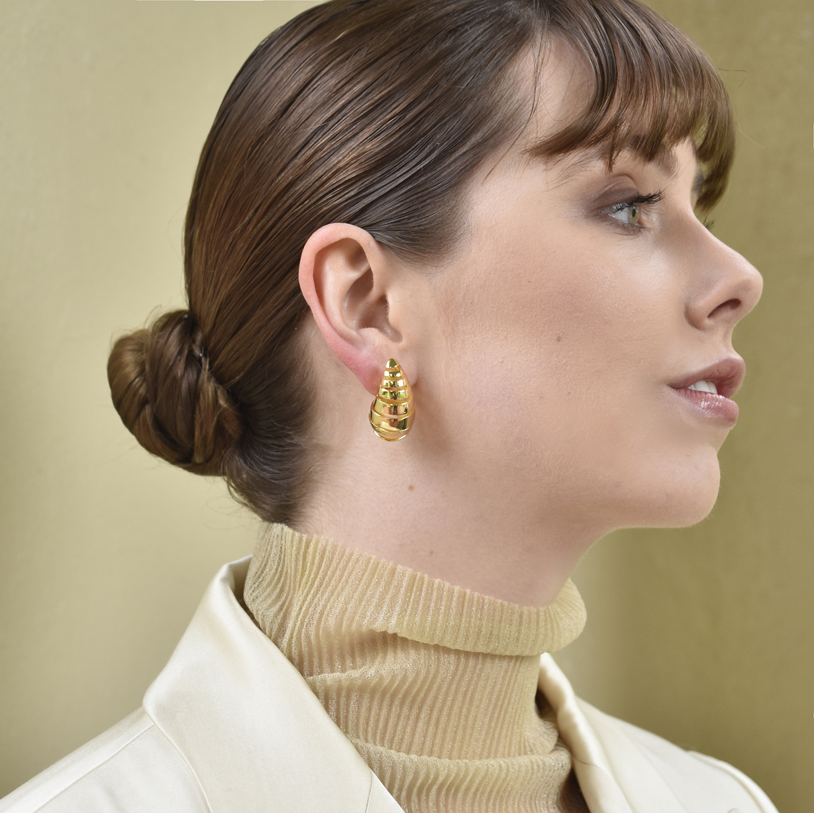 I am unique. I am special. I am me. Introducing Odyssey Artsy Cocoon Earrings (Gold) - an art deco style ear statement for style makers. This design features hollow-cut cocoon shaped earrings that are totally unique from every angle. The earrings are made in environmentally friendly stainless steel with 18K gold plating. Suitable for contemporary, artsy, creative styling, high fashion, smart casual, casual styles and more. Hypoallergenic, nickel, lead, and cadmium free.