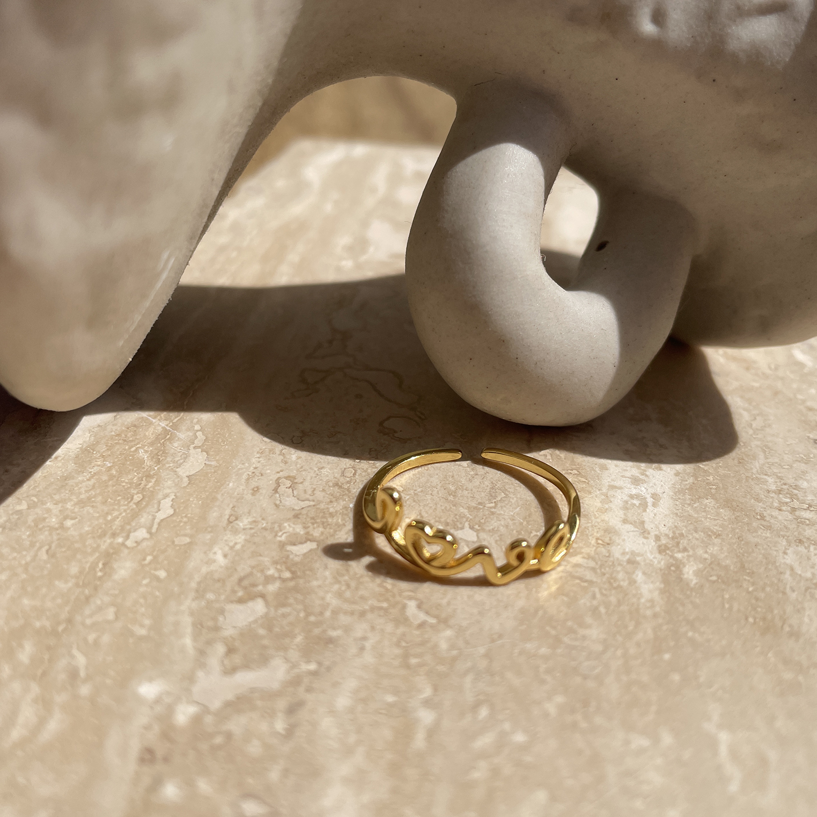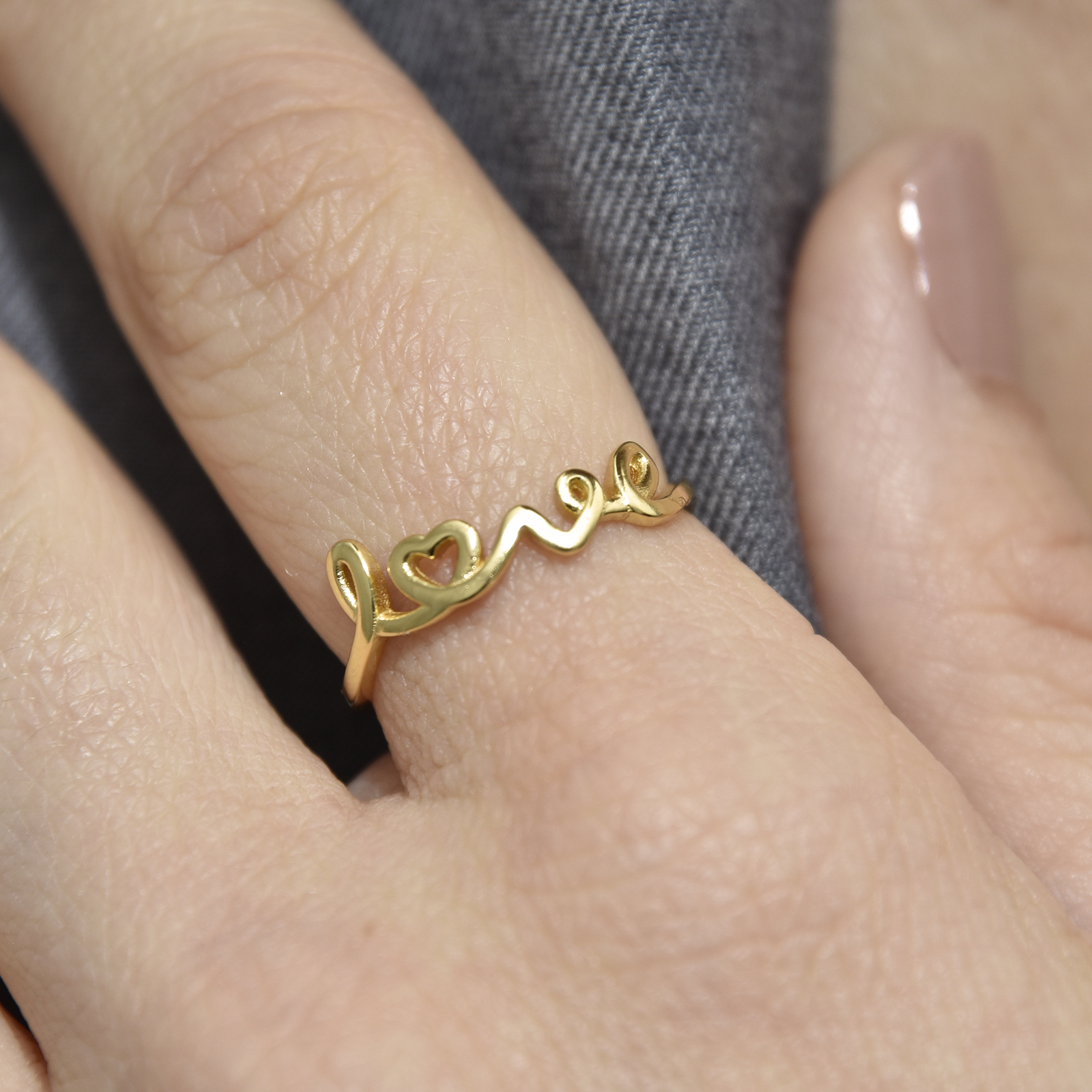 The energy of love is always flowing. Introducing Open to Love Ring - an artistic and simple finger beauty for ‘love advocators’ of all ages and gender. This design features a fine gold ring band with the word ‘love’ crafted as a part of the ring band. This ring is made in sterling silver with 18ct gold plating to premium jewellery standards. This ring is also fully adjustable to suit individual fitting preference. Perfect for all occasions, all personal styles. Suitable for everyday wear and super sweet for layering. Hypoallergenic, nickel, lead, and cadmium free.