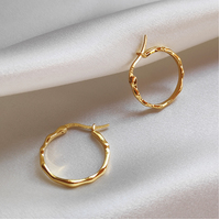 Everyday light luxury made to last. Introducing Original Gold Vermeil Everyday Hoop Earrings - something subtle, delicate and enduring. This design features slightly wavy hoops made of solid sterling silver with 2.5 microns of quality 18k gold plating (to Gold Vermeil Jewellery Standards). The curves of the hoops are very subtle, adding a fine zest that is unique and gentle. Perfect for all personal styles and for women, girls, kids of all ages. Hypoallergenic, nickel, cadmium and lead free. Allergy free.