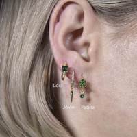 Green is the gaze of loveliness. Introducing Patina Dainty Zircon Floral Hoop Earrings (Emerald Green) - a simple and chic bright pop for your effortless everyday styling. This design features Austrian green zircon drops attached to dainty gold hoops. The front half the gold hoops are adorned with an adorable floral feature of Austrian green zirconias. The earrings are made in solid sterling silver with 18K gold plating for hypoallergenic and enduring wear. Perfect for modern, chic, minimalist, punk, earring layering, smart casual, casual, everyday styles and more. Hypoallergenic, nickel, lead, and cadmium free.