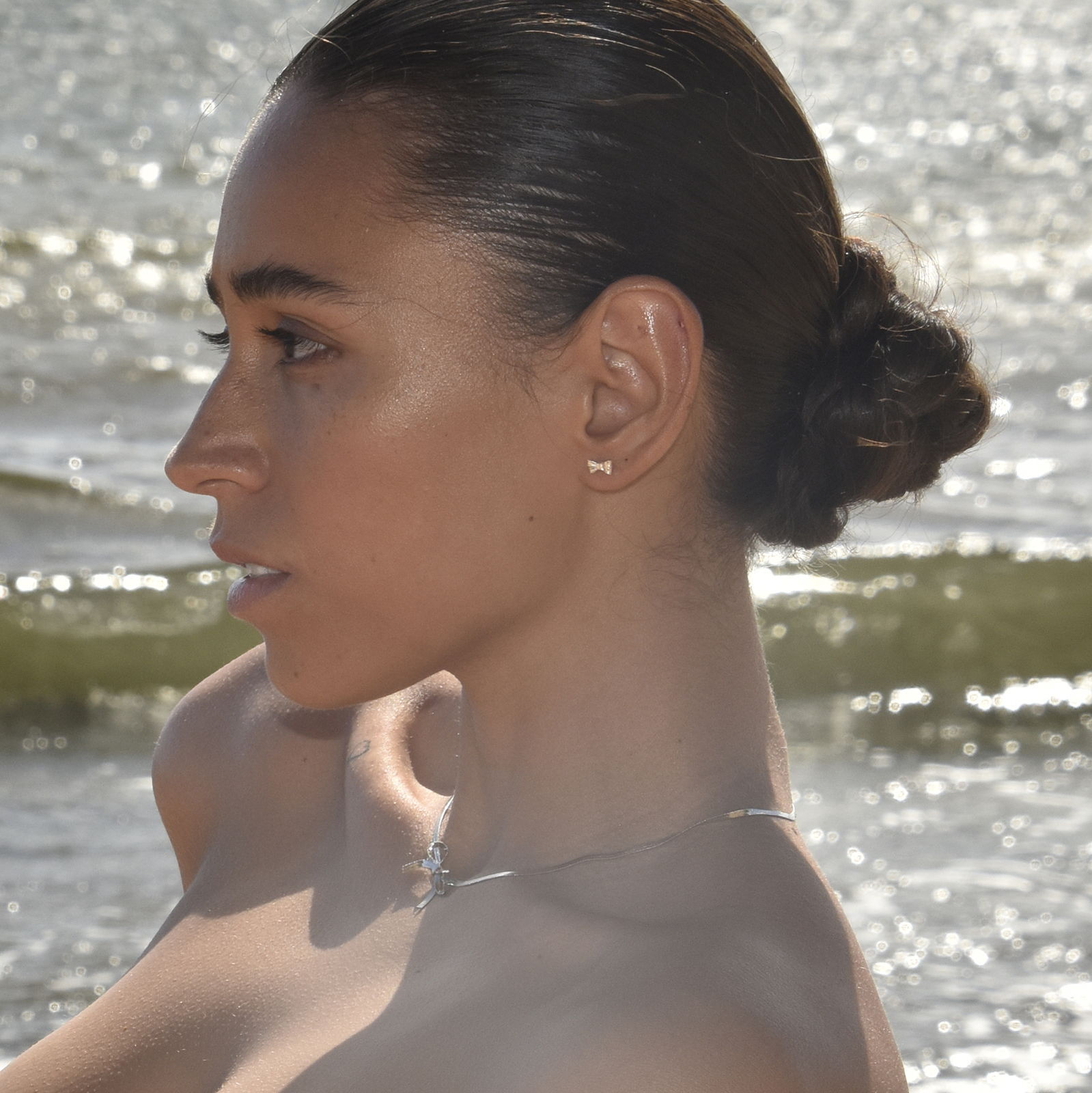 True strength is delicate. Introducing Perri Dainty Silver Bow Earrings - an everyday style adorable ear beauty for women and girls of all ages. This design features smoothly polished bow tie studs made in solid sterling silver. The earrings are versatile for styling and timeless for your jewellery wardrobe. Perfect for modern, retro, chic, delicate, feminine, minimalist, earring layering, smart casual, casual, everyday styles and more. Hypoallergenic, nickel, lead, and cadmium free.