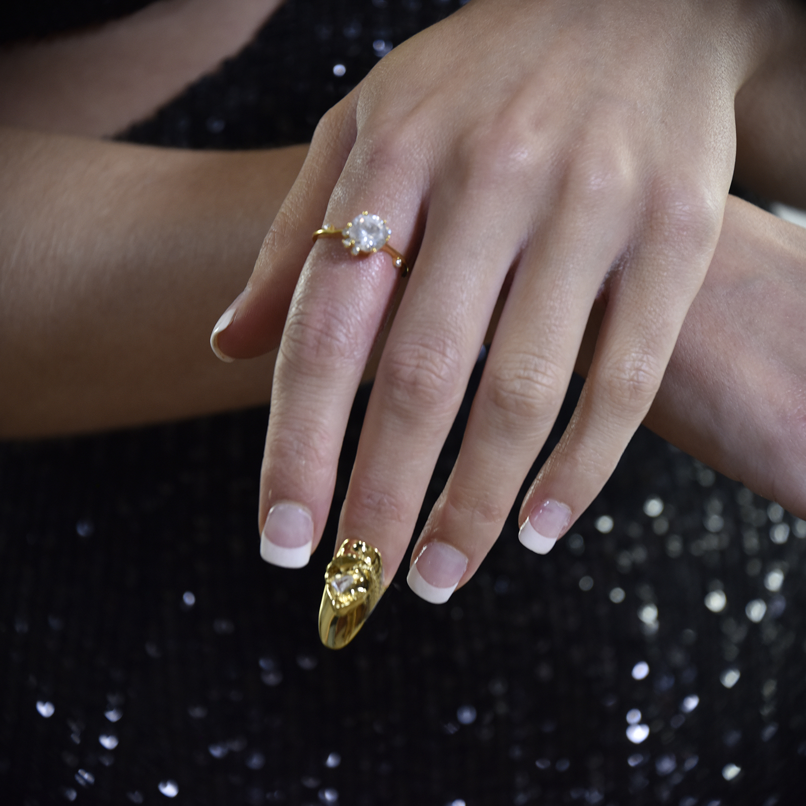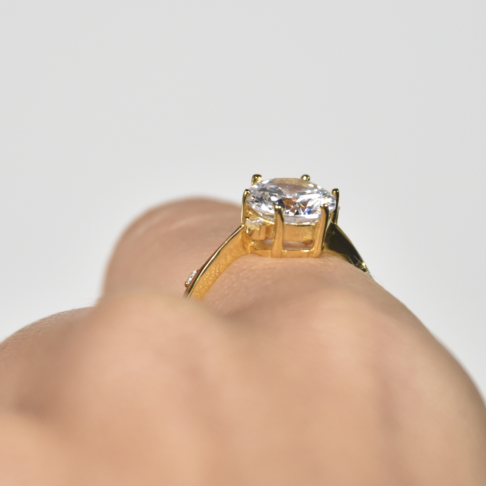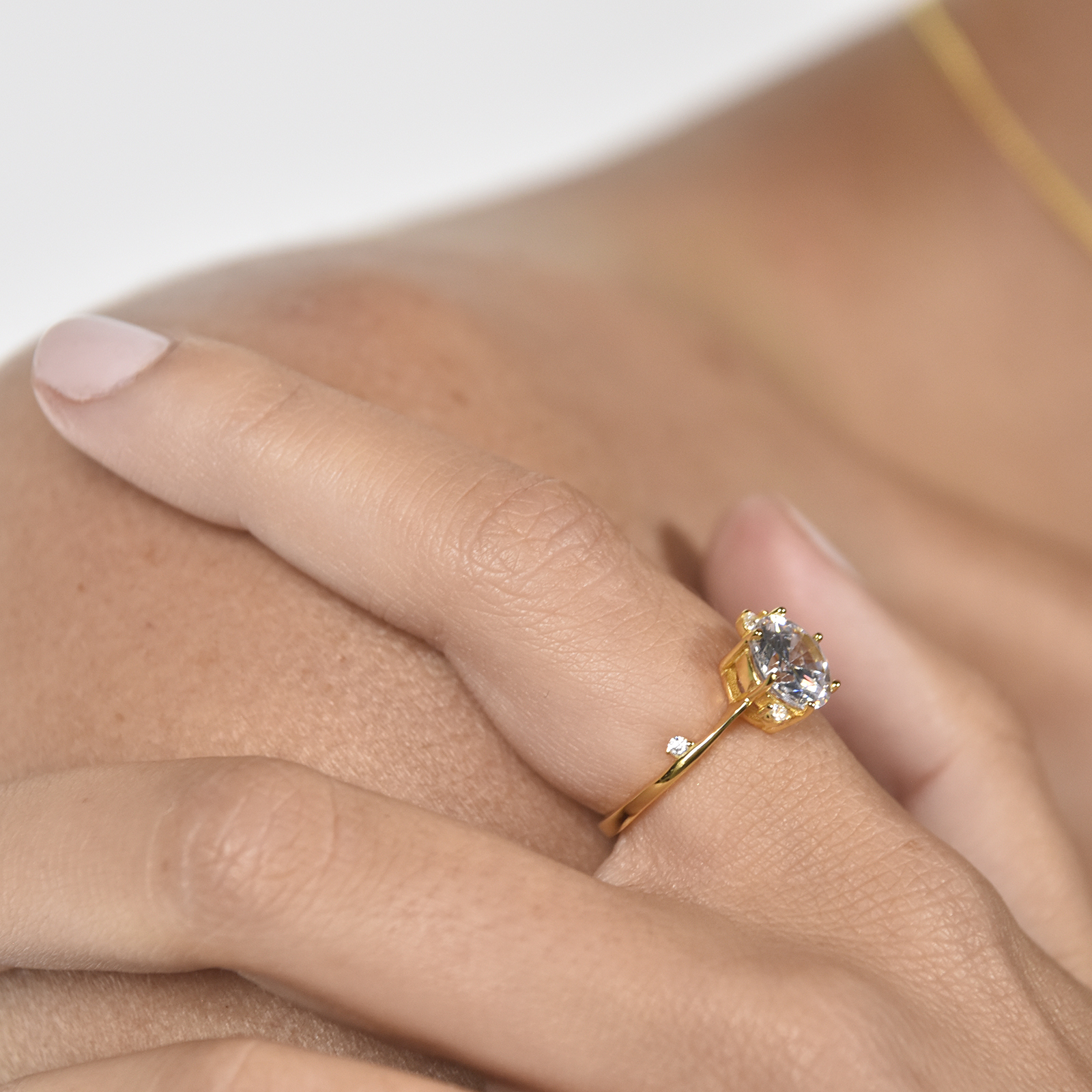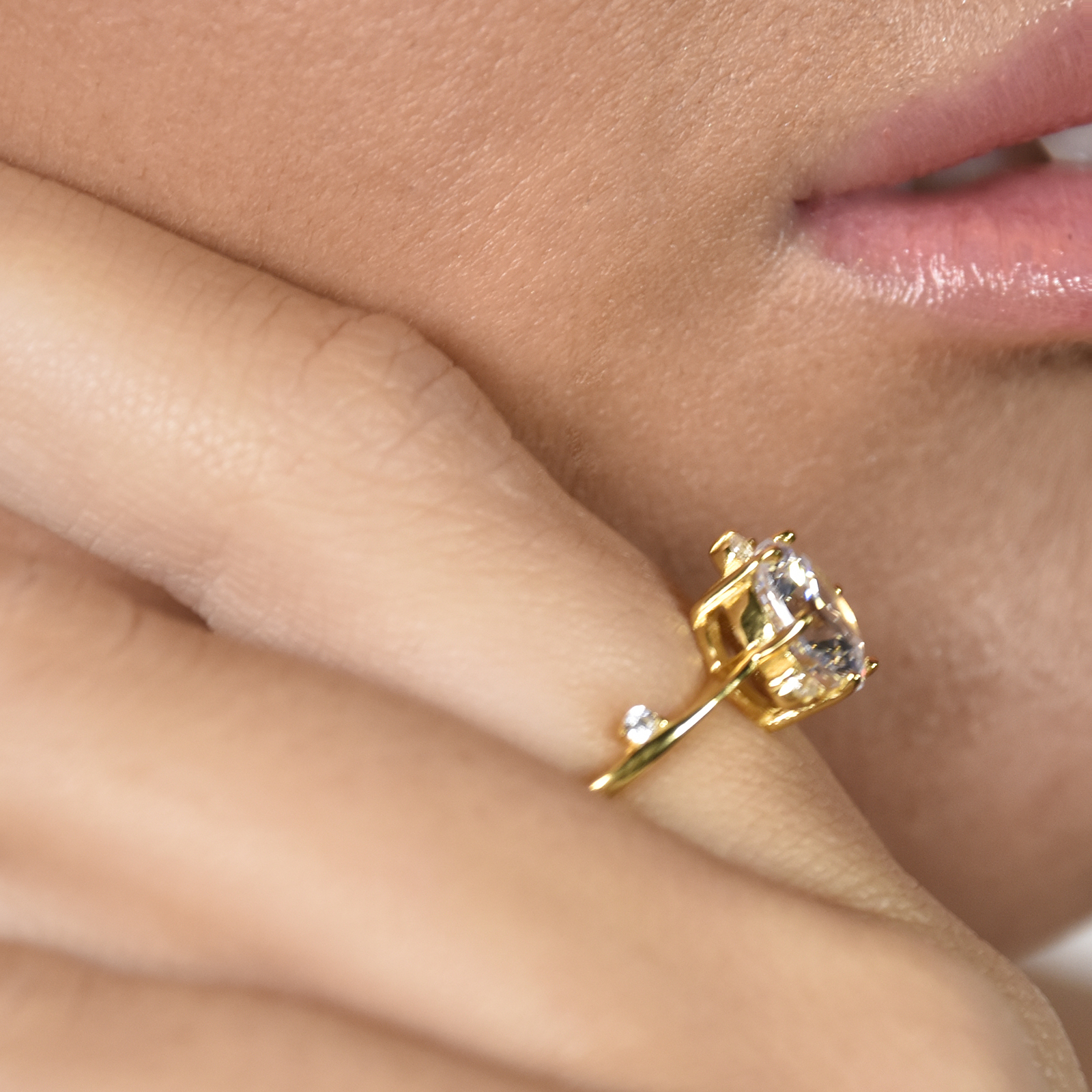 Delicate chic glamour adorned with gorgeous Austrian zircons. Introducing Phaedra Fine Austrian Zircon Open Ring (Gold Vermeil) - an artisan crafted light luxury beauty embracing elegance in a timeless way. This design features an 8mm (in diameter) premium quality Austrian zircon crystal embedded in a solid claw setting. Take a close look and you will find subtle yet stunning details with Austrian cubic zirconias embellished on both side of the ring band as well as attached to the main stone (three cubic zirconias on one side and one on the other). This ring is made in solid sterling silver with 2.5 microns of 14K gold plating for hypoallergenic and enduring wear. Due to the softness of sterling silver, this ring can be easily adjusted manually for your ideal fit. Perfect for all personal styles as well as a loving gift for yourself and the one you love. Hypoallergenic, nickel, lead, and cadmium free.